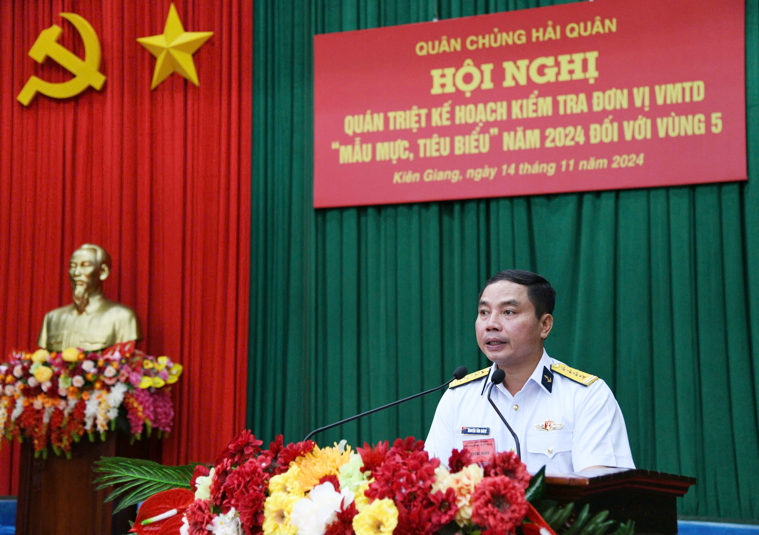 Ngày 14 và 15/11, tại TP. Phú Quốc, tỉnh Kiên Giang, đoàn công tác của Quân chủng Hải quân do Đại tá Nguyễn Văn Bách, Phó Tư lệnh, Tham mưu trưởng Hải quân làm trưởng đoàn đã đến kiểm tra đơn vị VMTD mẫu mực, tiêu biểu năm 2024 đối với Bộ Tư lệnh Vùng 5.