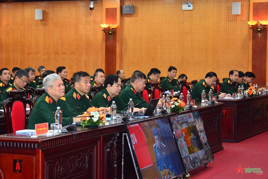 Các đại biểu tham dự hội nghị tại điểm cầu Tổng cục Chính trị. Ảnh: Báo QĐND điện tử
