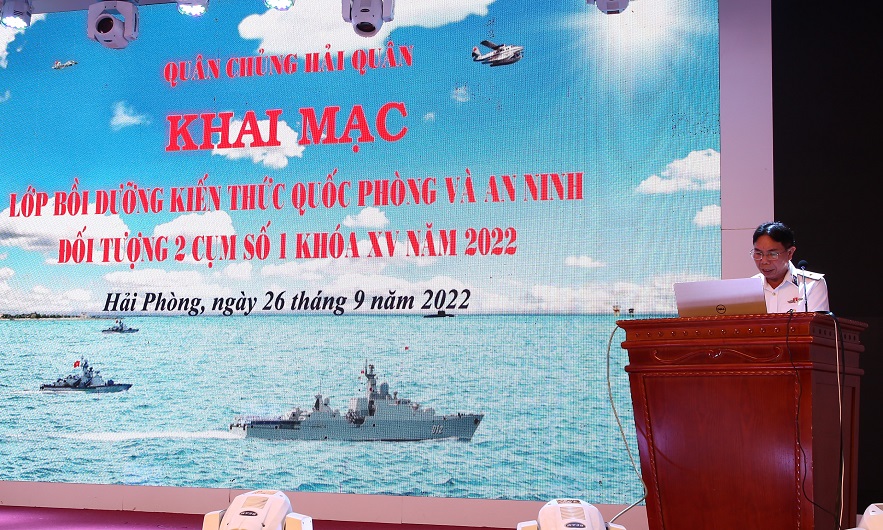 Từ 26 đến 30/9, tại TP. Hải Phòng, Quân chủng Hải quân tổ chức lớp bồi dưỡng kiến thức quốc phòng và an ninh (QPAN) cho đối tượng 2 cụm số 1. Chuẩn Đô đốc Phạm Văn Hùng, Phó Tham mưu trưởng Hải quân và đại biểu Cục Dân quân tự vệ, Bộ Tổng Tham mưu dự khai mạc.