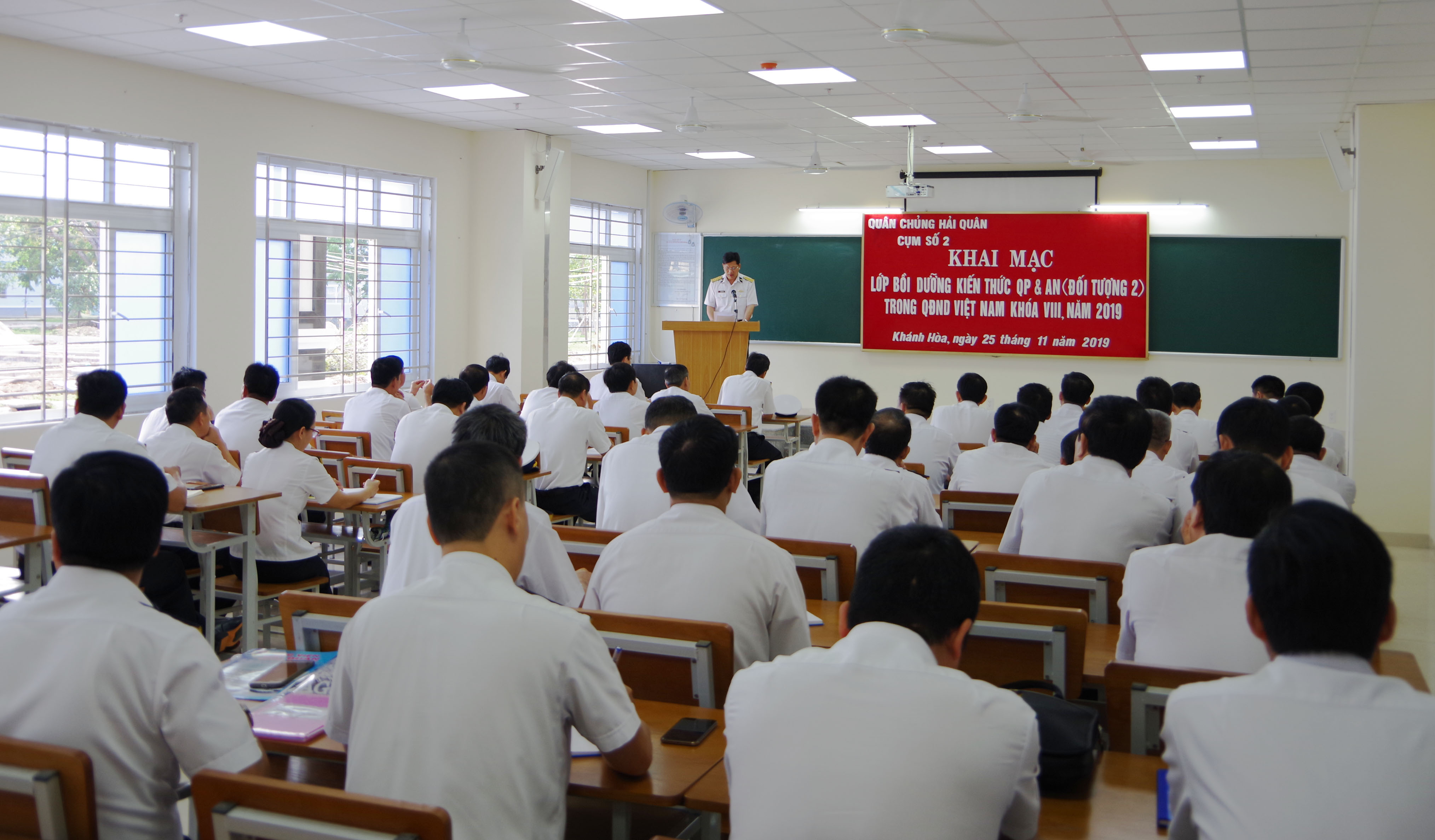 Sáng 25-11, tại Học viện Hải quân, TP. Nha Trang, tỉnh Khánh Hòa, Quân chủng Hải quân tổ chức Lớp bồi dưỡng kiến thức quốc phòng và an ninh (QP-AN) cho đối tượng 2 năm 2019.