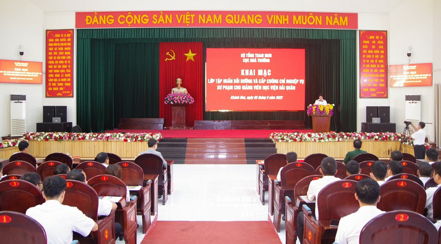 Ngày 5/9, tại Học viện Hải quân (TP. Nha Trang, tỉnh Khánh Hòa), Cục Nhà trường, Bộ Tổng Tham mưu khai mạc lớp tập huấn bồi dưỡng nghiệp vụ sư phạm cho giảng viên Học viện Hải quân năm 2022.