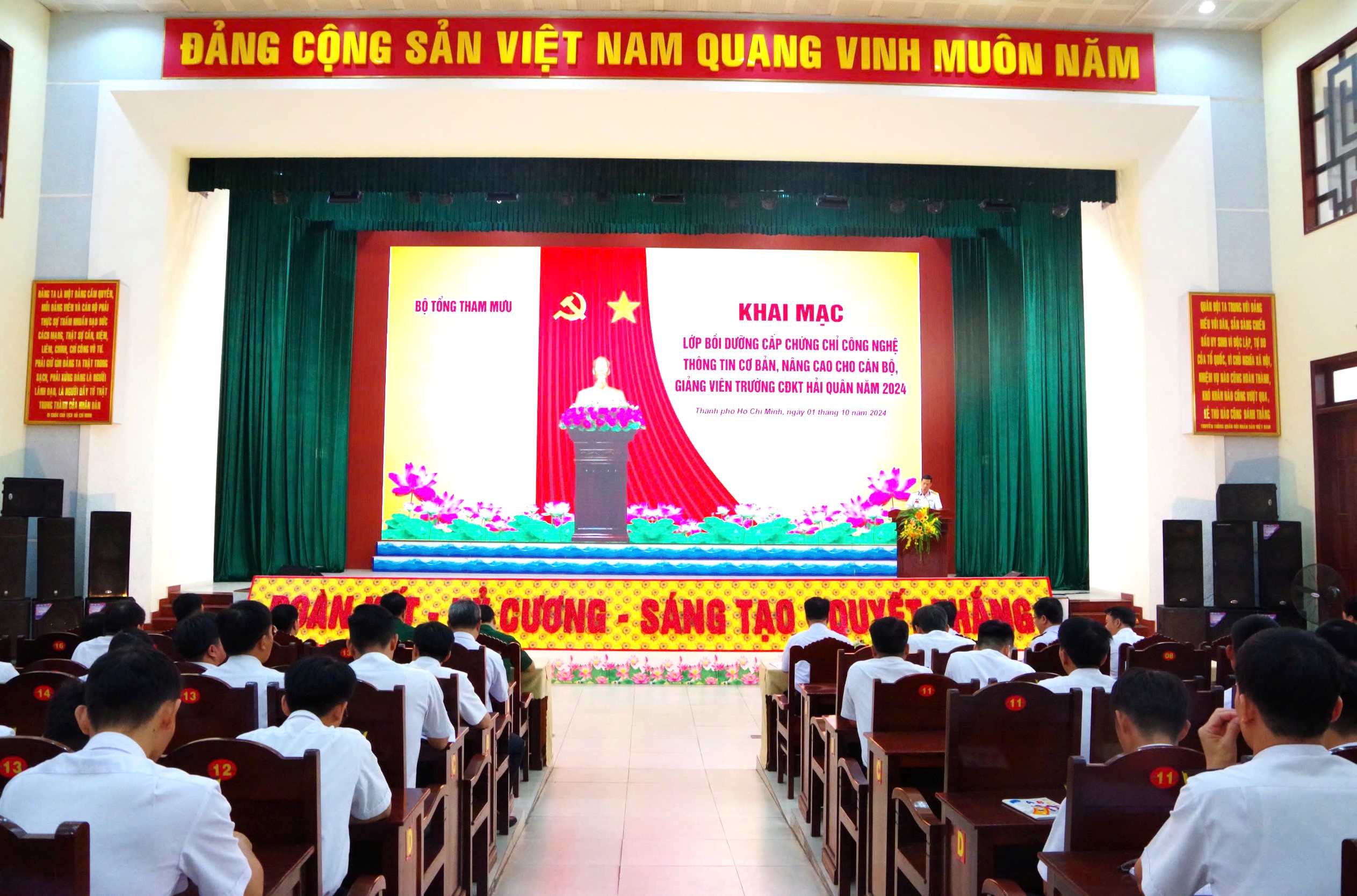 Sáng 1/10, tại TP. Hồ Chí Minh, Cục Nhà trường, Bộ Tổng Tham mưu phối hợp với Trường Cao đẳng Kỹ thuật Hải quân tổ chức khai mạc lớp bồi dưỡng tin học cơ bản và nâng cao cho 110 cán bộ, giảng viên của nhà trường. Đại tá Đỗ Ngọc Hiểu, Hiệu trưởng dự và chủ trì khai mạc.