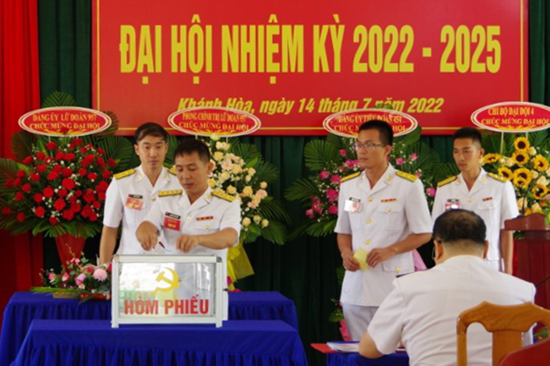 Ngày 14/7, tại TP. Cam Ranh, tỉnh Khánh Hoà, Chi bộ Đại đội 3, Đảng bộ Tiểu đoàn 454 (Lữ đoàn 957, Vùng 4) tổ chức Đại hội nhiệm kỳ 2022-2025. Đây là chi bộ được Đảng ủy Vùng 4 chọn làm trước để rút kinh nghiệm cho các đơn vị khối bờ.