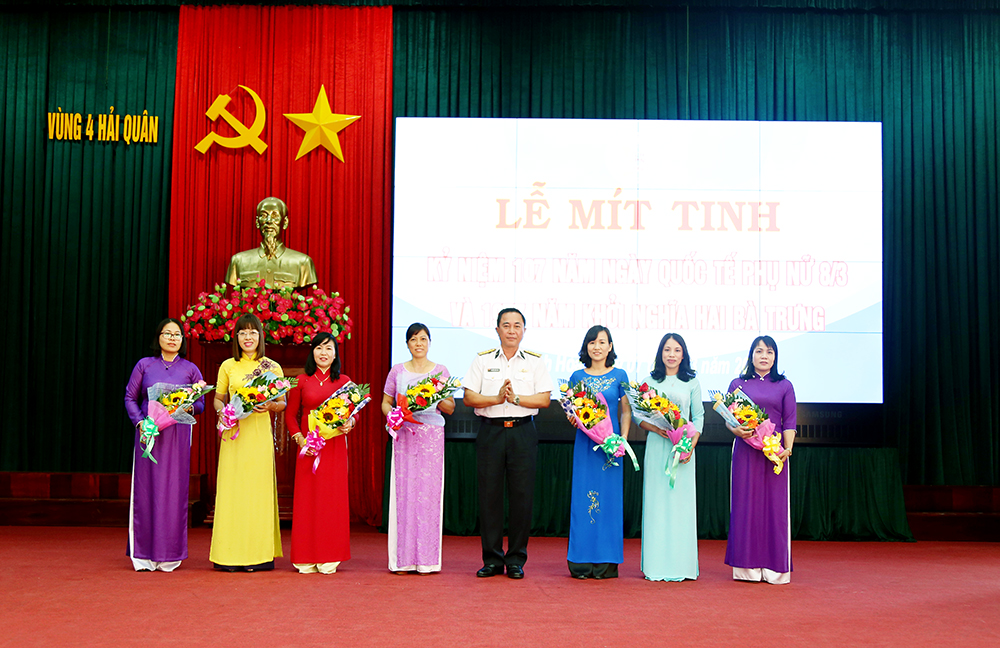 Phát biểu trong buổi lễ kỷ niệm, Đại tá Nguyễn Công Sơn, Phó Chính uỷ Vùng 4 đánh giá cao các hoạt động của chị em phụ nữ trong đơn vị. Phong trào thi đua “Phụ nữ tích cực học tập, lao động sáng tạo, hoàn thành tốt nhiệm vụ, xây dựng gia đình hạnh phúc” đã hòa cùng với phong trào thi đua quyết thắng của đơn vị tạo nên khí thế thi đua sôi nổi trong toàn vùng, góp phần thực hiện thắc lợi nhiệm vụ chính trị được giao. Đồng thời yêu cầu cán bộ, hội viên tiếp tục đẩy mạnh phong trào “Phụ nữ Hải quân tích cực học tập, lao động sáng tạo, hoàn thành tốt nhiệm vụ, xây dựng gia đình hạnh phúc” gắn với thực hiện phong trào thi đua quyết thắng của cơ quan, đơn vị.