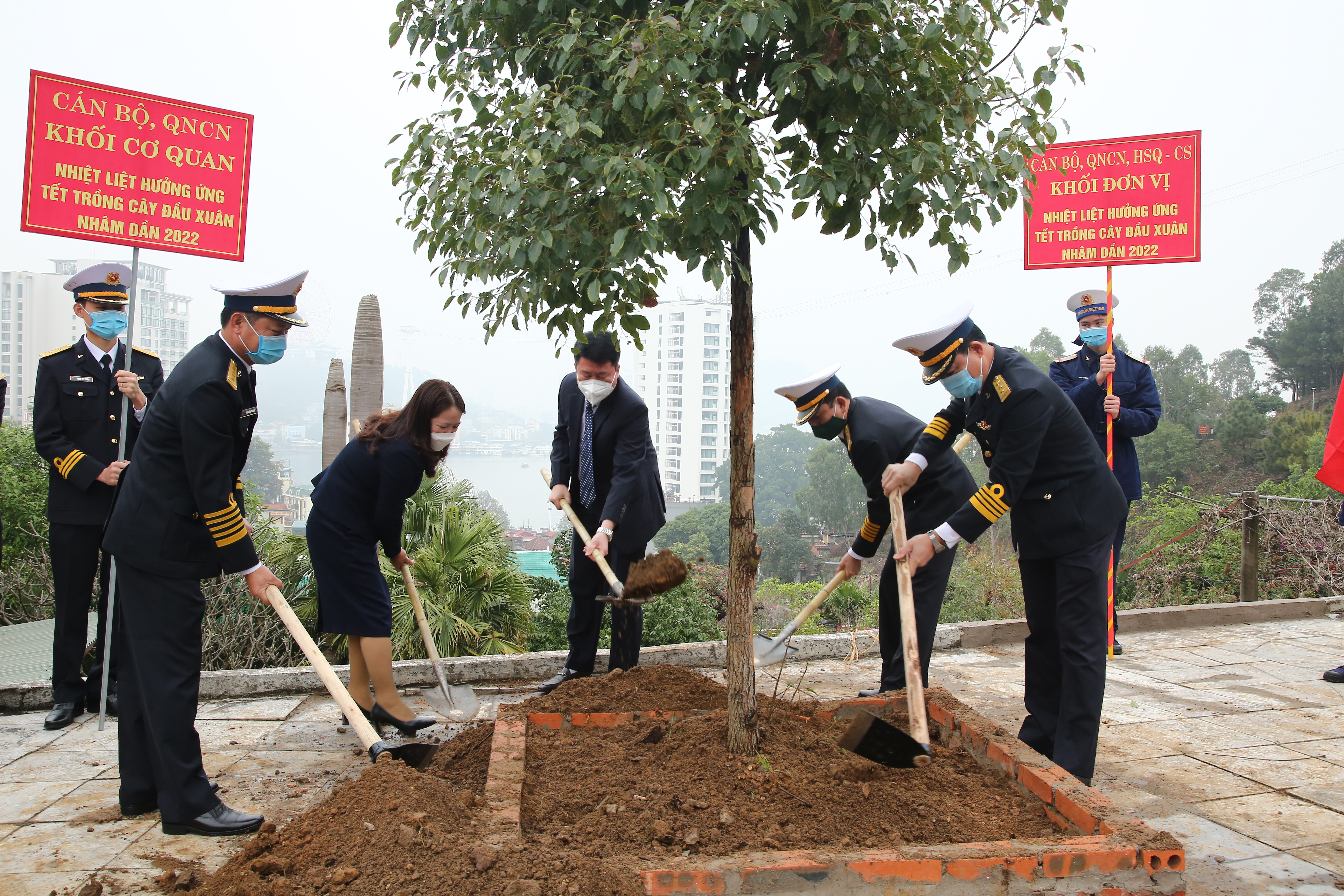 Các đại biểu trồng cây tại khu B, Đoàn 22 Hạ Long
