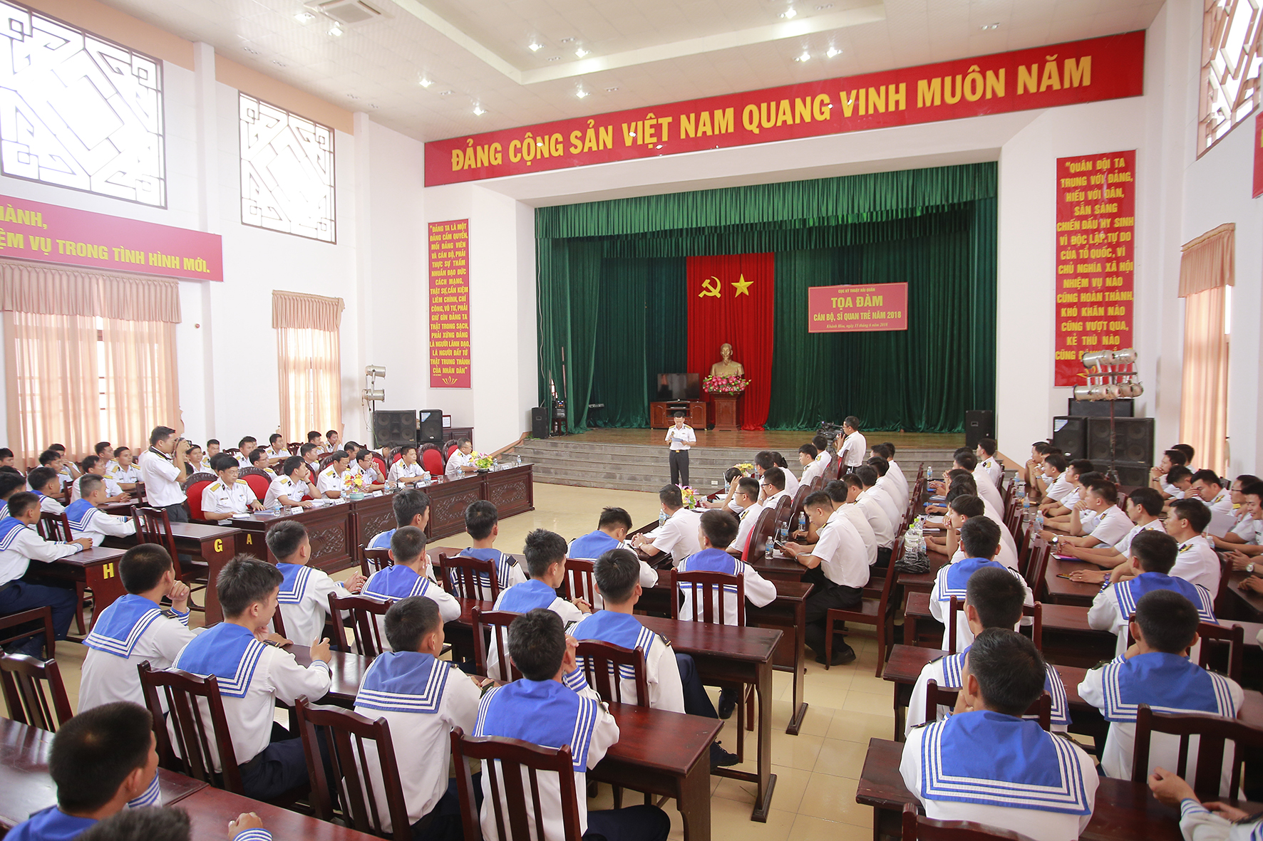 Chiều 15-6, tại Khánh Hòa, Cục Kỹ thuật Hải quân đã tổ chức tọa đàm cán bộ sĩ quan trẻ các đơn vị Cục Kỹ thuật khu vực miền Trung với chủ đề: “Cán bộ, sĩ quan trẻ kiên định, trí tuệ, xung kích, quyết thắng”. Đại tá Nguyễn Long Chuyên, Phó Chủ nhiệm Chính trị Cục Kỹ thuật chủ trì buổi tọa đàm.