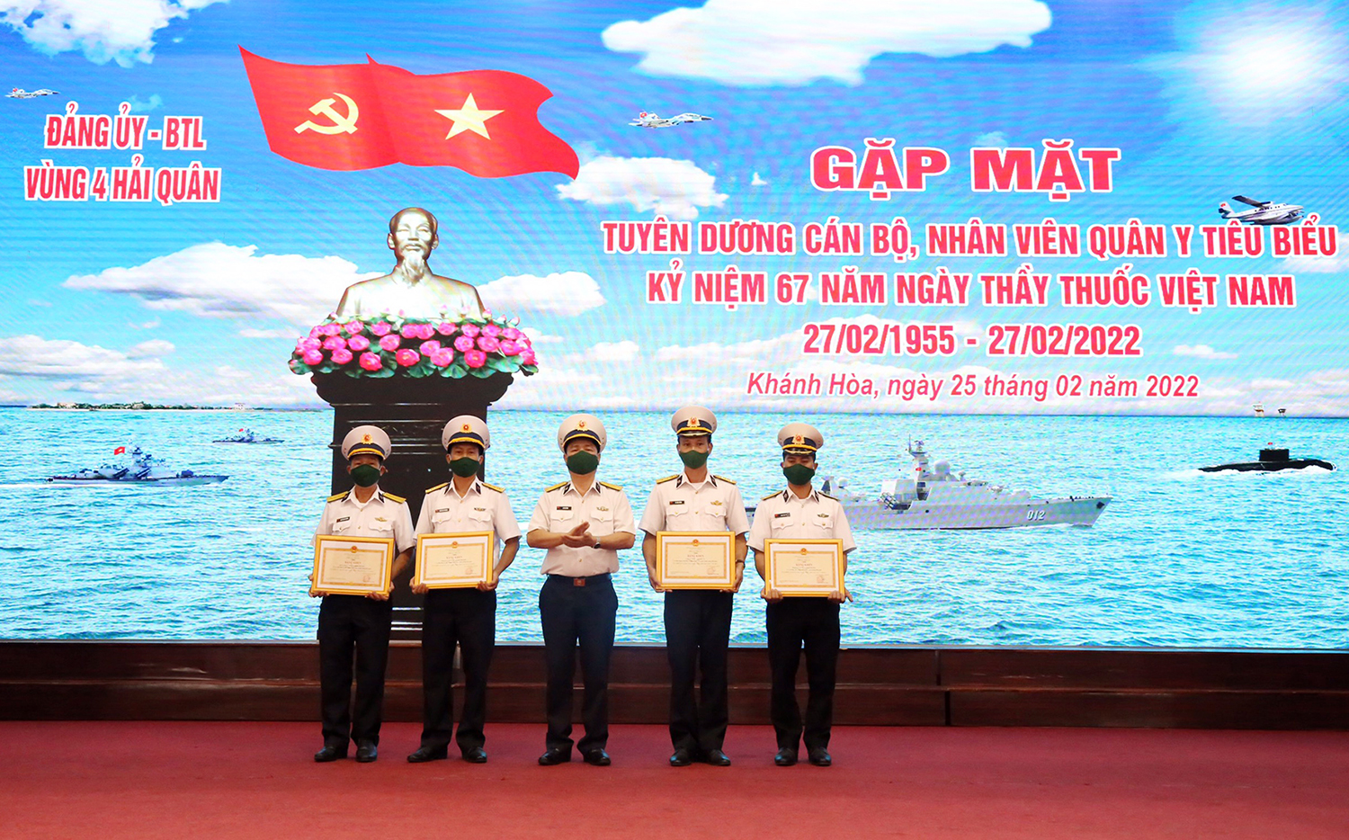 * Ngày 25/2, tại TP.Cam Ranh, tỉnh Khánh Hòa, Vùng 4 Hải quân đã tổ chức gặp mặt tuyên dương cán bộ, nhân viên quân y tiêu biểu. Đại tá Lã Văn Hùng, Phó Chính ủy Vùng 4 Hải quân chủ trì.