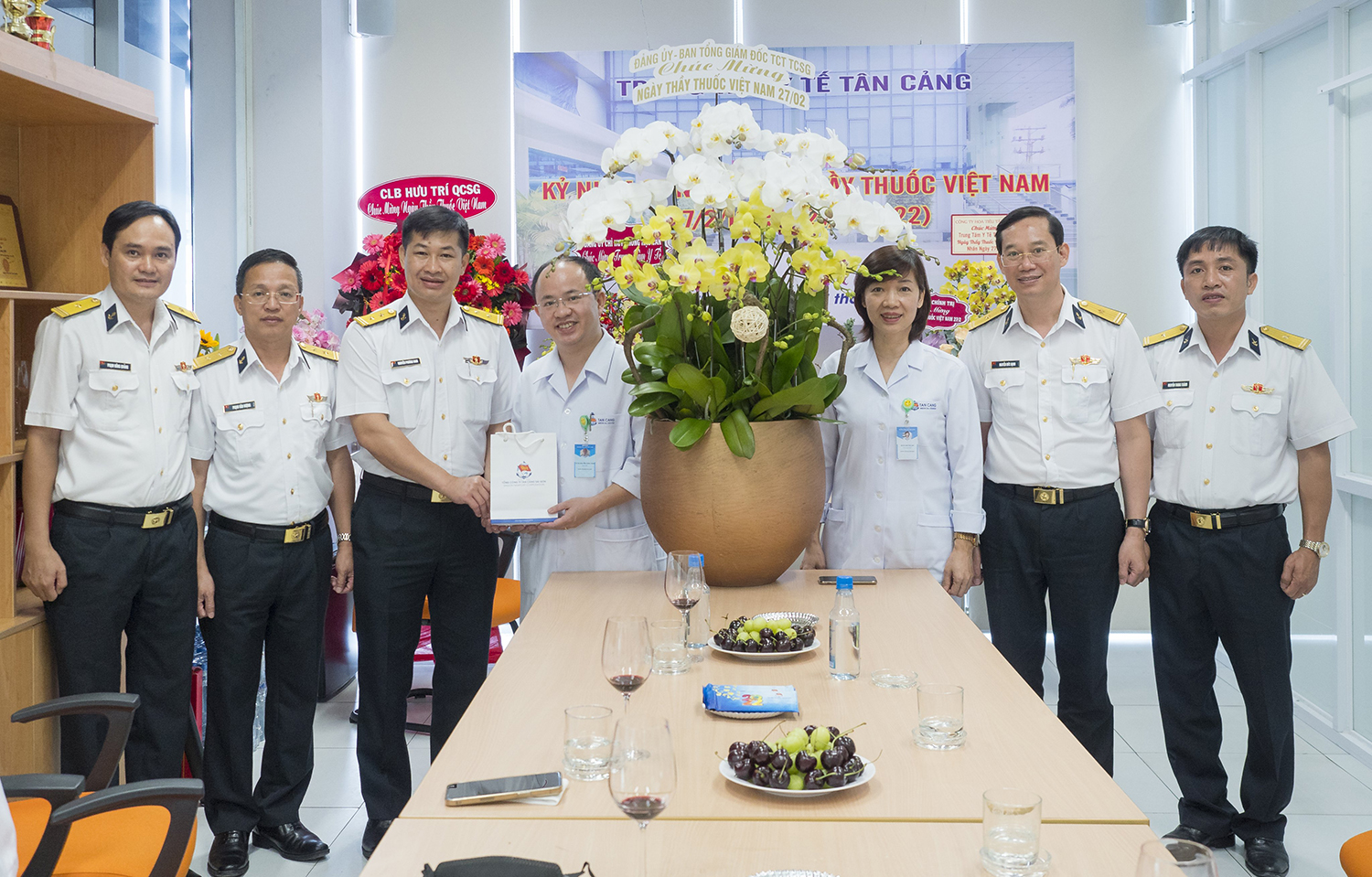Tặng hoa chúc mừng tập thể y, bác sỹ của Trung tâm Y tế Tân cảng