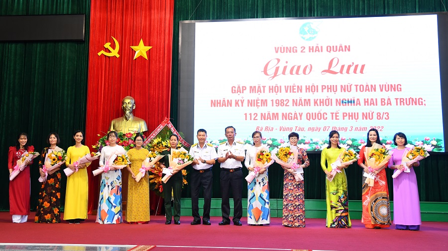 Chiều 7/3 tại thành phố Vũng Tàu, Bộ Tư lệnh Vùng 2 Hải quân tổ chức buổi giao lưu, gặp mặt hội viên Hội phụ nữ Vùng nhân dịp kỷ niệm 112 năm Ngày Quốc tế Phụ nữ 8/3 và 1982 năm khởi nghĩa Hai Bà Trưng.