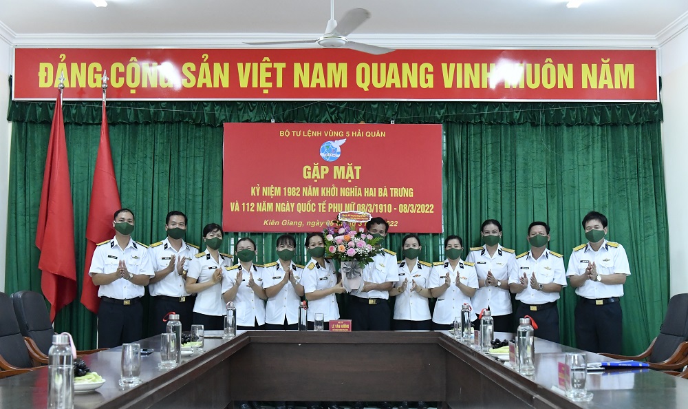 *Chiều 8/3, tại TP. Phú Quốc, tỉnh Kiên Giang, Vùng 5 Hải quân tổ chức gặp mặt cán bộ, hội viên Hội Phụ nữ Vùng nhân kỷ niệm 112 năm Ngày Quốc tế Phụ nữ 8/3 và 1982 năm khởi nghĩa Hai Bà Trưng. Đại tá Lê Văn Hưởng, Chủ nhiệm Chính trị Vùng chủ trì.