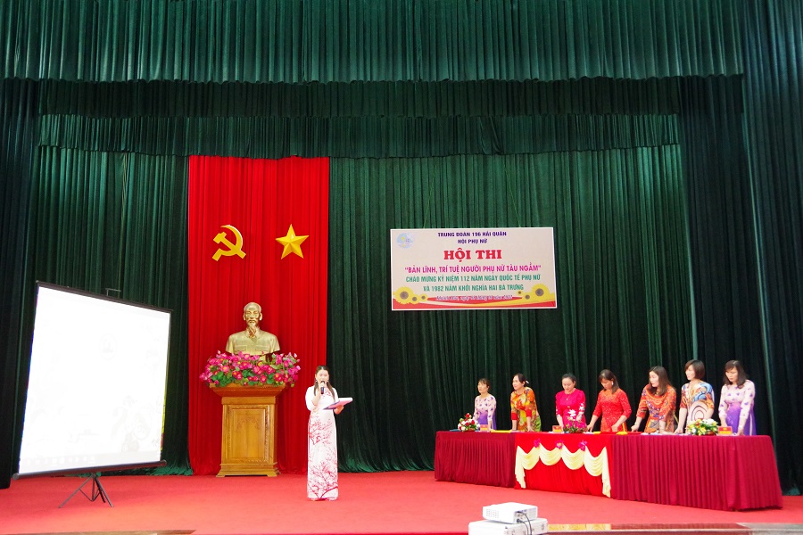 Hội thi “Bản lĩnh, trí tuệ người phụ nữ tàu ngầm” với sự tham gia của 3 đội thi: Đội hoa hướng dương, đội hoa muống biển và đội hoa bàng vuông. Các đội được tìm hiểu những kiến thức cơ bản về luật bình đẳng giới, luật hôn nhân gia đình, dinh dưỡng, sức khỏe, về truyền thống lịch sử phụ nữ Việt Nam anh hùng.