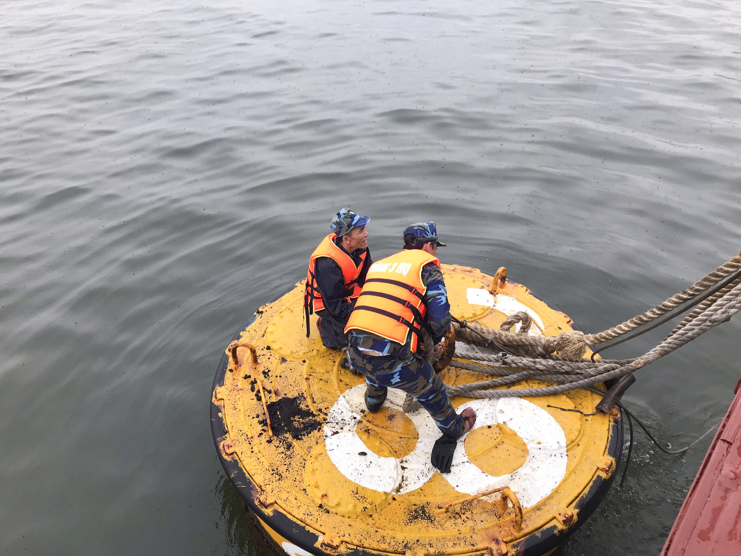 Cán bộ, chiến sĩ Tàu 335, Hải đội 315, Lữ đoàn 172 làm dây phao chống bão. Ảnh: Nguyễn Long