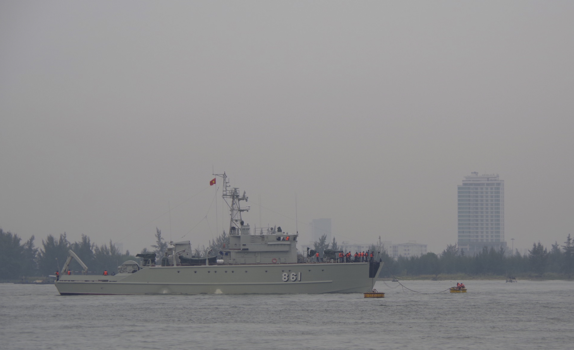 Tàu 861, Lữ đoàn 161, Vùng 3 Hải quân neo đậu tránh bão. Ảnh: Văn Thông