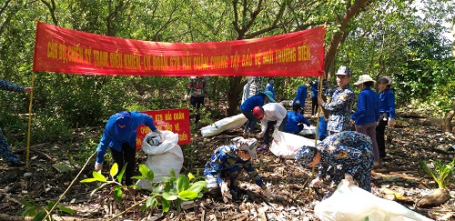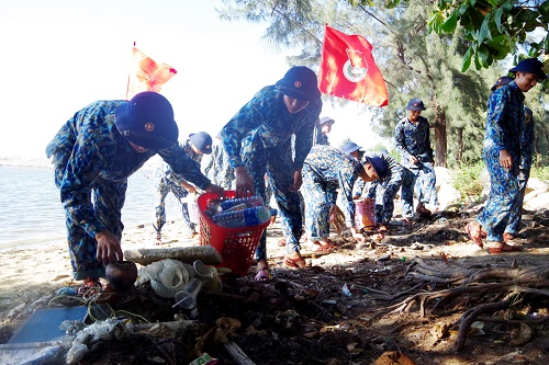 Gần 2.000 cán bộ, chiến sĩ của các đơn vị đã tiến hành khơi thông cống rãnh, phát quang bụi rậm, chăm sóc hơn 1.000 cây xanh, làm sạch gần 12 km bờ biển; phân loại, thu gom và xử lý rác thải nhựa ở những khu vực còn tồn đọng kéo dài, đặc biệt là rác thải nhựa khu vực bờ biển.