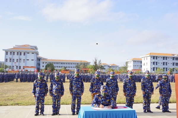 *Chuẩn Đô đốc Phạm Văn Quang, Phó Chủ nhiệm Chính trị Hải quân dự và chỉ đạo Lễ ra quân huấn luyện của Trung đoàn 196.