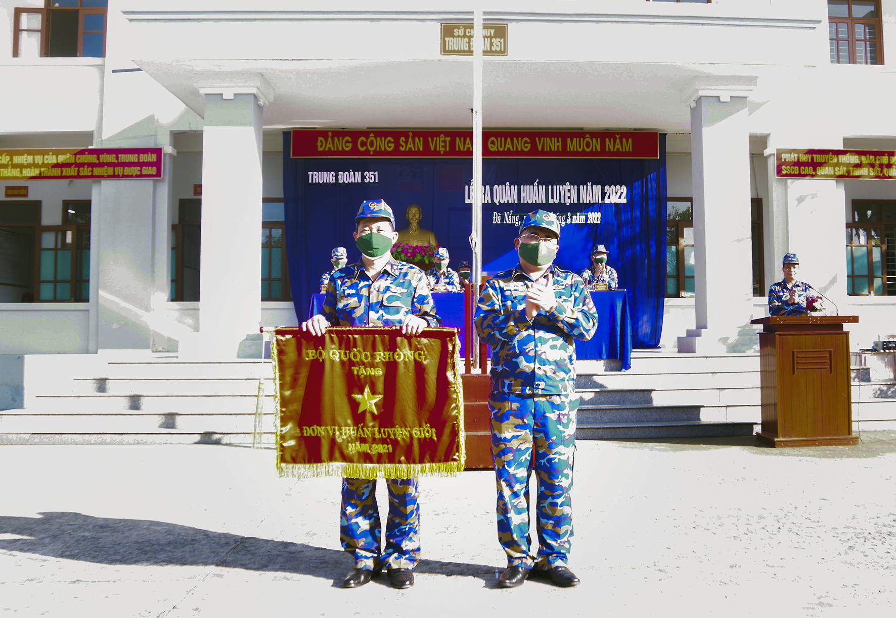 Thừa ủy quyền của thủ trưởng Bộ Quốc phòng, thủ trưởng Bộ Tư lệnh Vùng 3 đã trao cờ thi đua Đơn vị huấn luyện giỏi cho Trung đoàn và chứng kiến lễ phát động thi đua trong huấn luyện năm 2022 .