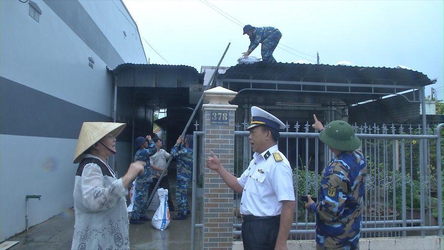 Cán bộ, chiến sĩ Vùng 4 còn thông báo diễn biến, hướng đi của cơn bão đồng thời yêu cầu bà con không được chủ quan, chuẩn bị đồ đạc, sẵn sàng di chuyển đến đến khu vực tập trung để đảm bảo an toàn khi bão đổ bộ trực tiếp vào đất liền.