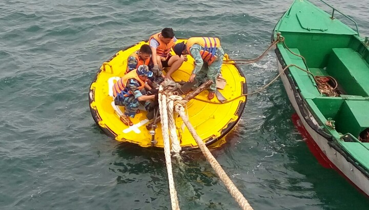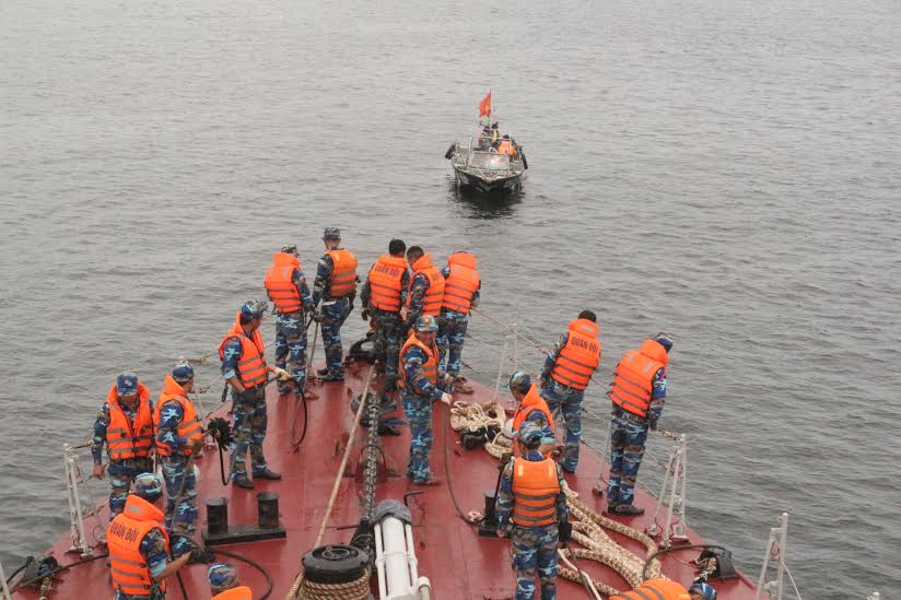 Cán bộ, chiến sĩ Vùng 4 củng cố phao neo
