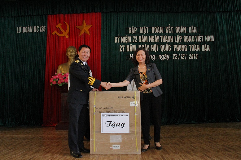 Cũng tại buổi gặp mặt đại biểu Hội liên hiệp Phụ nữ Thành Phố Hà Nội đã tặng Lữ đoàn 126 một máy Photocoppy trị giá gần 100 triệu đồng.
