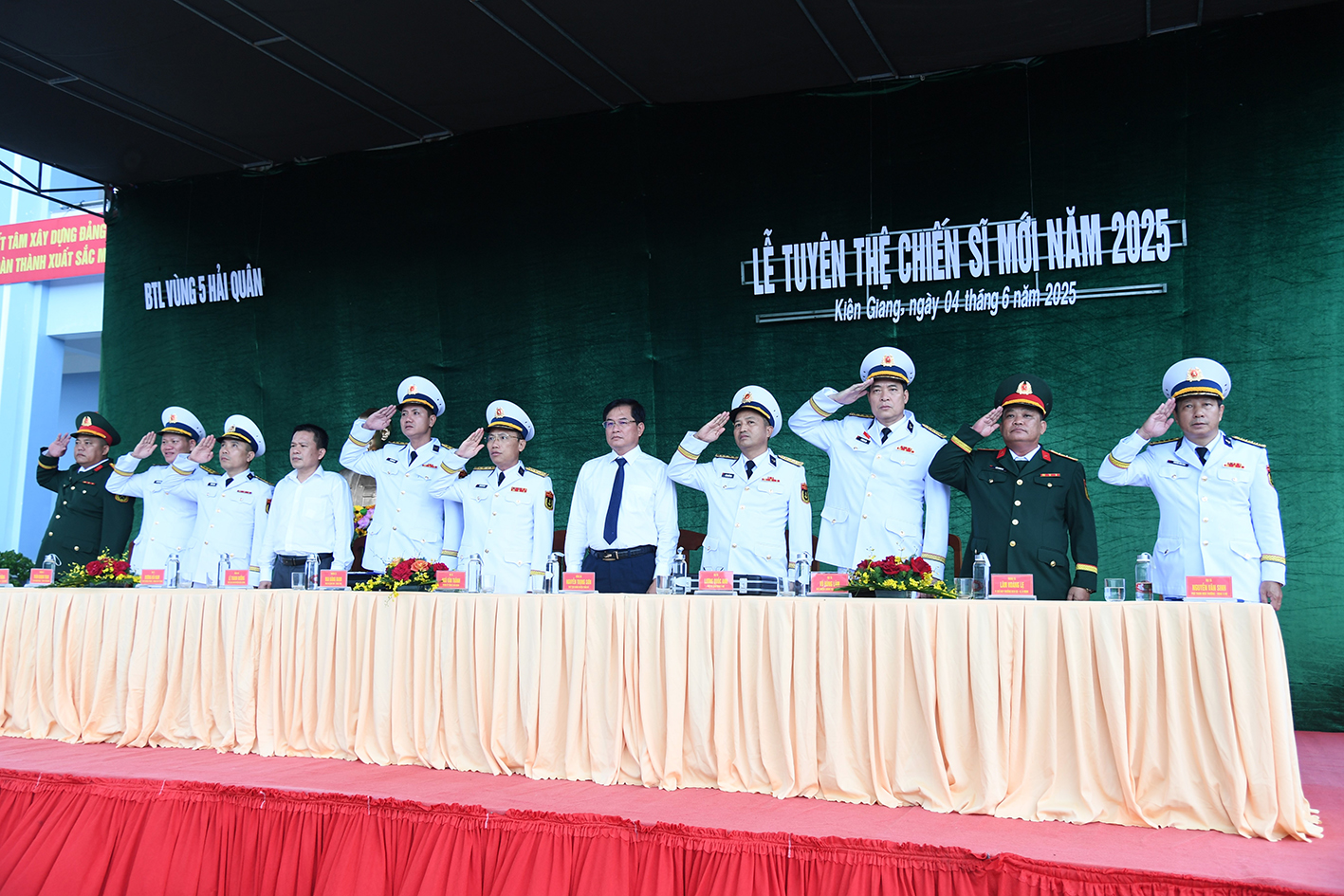 *Tại TP. Phú Quốc, tỉnh Kiên Giang, Bộ Tư lệnh Vùng 5 Hải quân tổ chức Lễ tuyên thệ CSM năm 2025. Đại tá Ngô Văn Thành, Bí thư Đảng ủy, Chính ủy Vùng dự và chỉ đạo.