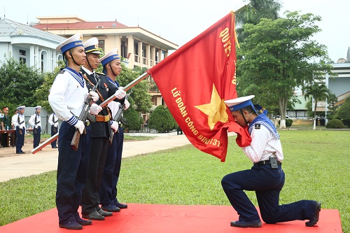 Chiến sĩ mới Lữ đoàn 131 hôn quân kỳ trong Lễ tuyên thệ