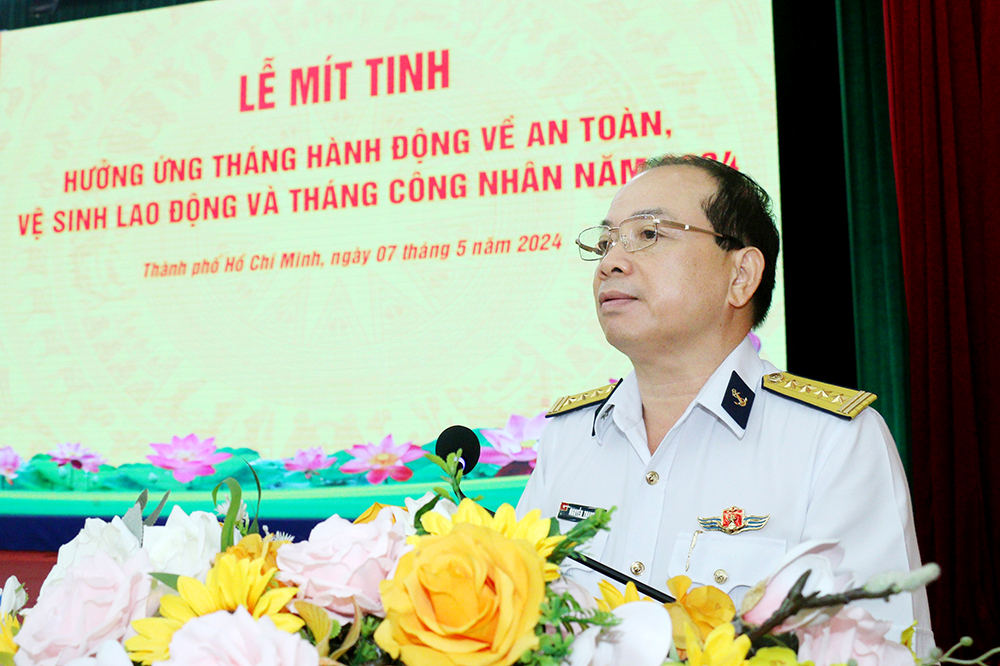 Sáng 7/5, tại TP. Hồ Chí Minh, Tổng công ty Tân cảng Sài Gòn tổ chức mít tinh hưởng ứng Tháng hành động về an toàn, vệ sinh lao động (AT-VSLĐ) và Tháng Công nhân năm 2024. Đại tá Nguyễn Thanh Trúc, Phó Tổng giám đốc dự, chủ trì.