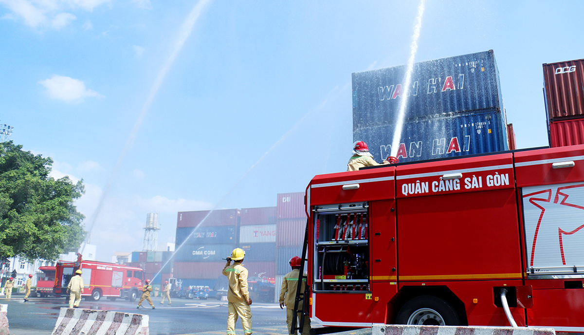 Thao diễn phương án chữa cháy container tại bãi hàng Terminal Cát Lái A