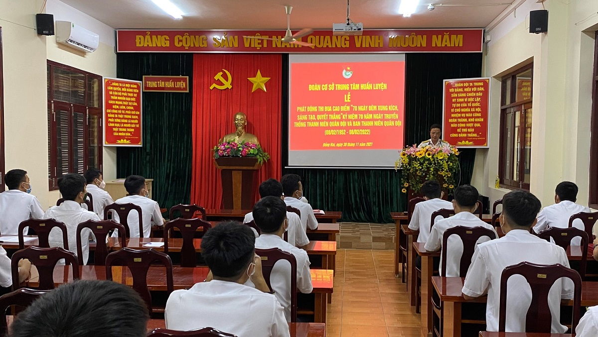ĐVTN phát huy vai trò xung kích xây dựng doanh trại chính quy “sáng, xanh, sạch, đẹp”; 100% tổ chức đoàn xung kích chuẩn bị đầy đủ hệ thống giáo án, sổ sách, mô hình, học cụ phục vụ huấn luyện năm 2022. 100% cán bộ, đoàn viên phấn đấu hoàn thành nhiệm vụ, trong đó có trên 90% hoàn thành tốt và xuất sắc…