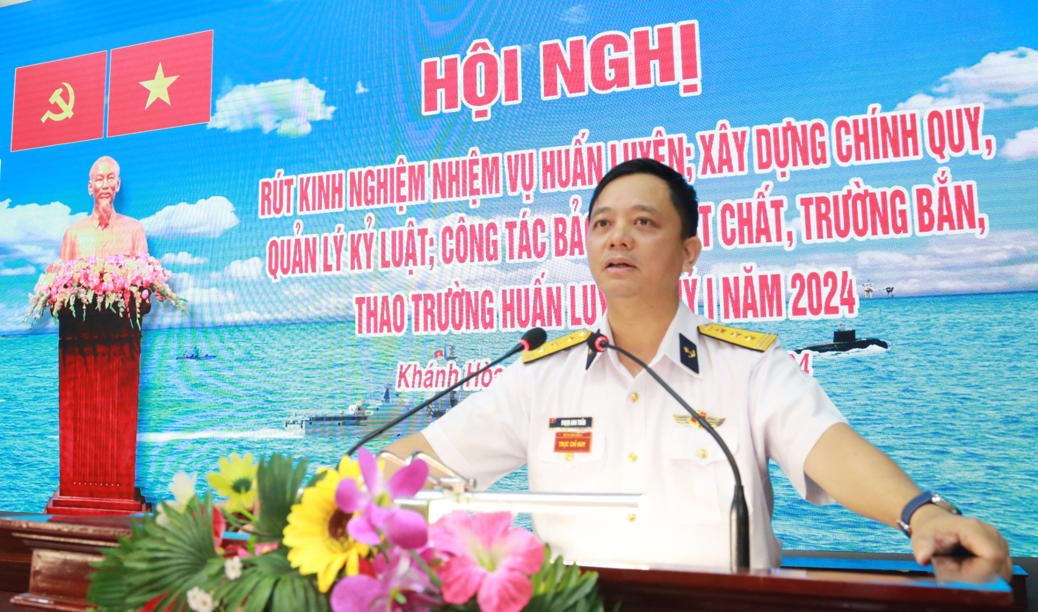 Chiều 3/4, tại TP. Cam Ranh, tỉnh Khánh Hòa, Bộ Tư lệnh Vùng 4 Hải quân tổ chức Hội nghị rút kinh nghiệm huấn luyện, xây dựng chính quy, chấp hành kỷ luật; công tác bảo đảm vật chất, trường bắn, thao trường huấn luyện Quý I năm 2024. Chuẩn Đô đốc Ngô Văn Thuân, Bí thư Đảng uỷ, Chính ủy Vùng dự và chỉ đạo. Thượng tá Phạm Anh Tuấn, Phó Tư lệnh, Tham mưu trưởng Vùng chủ trì.