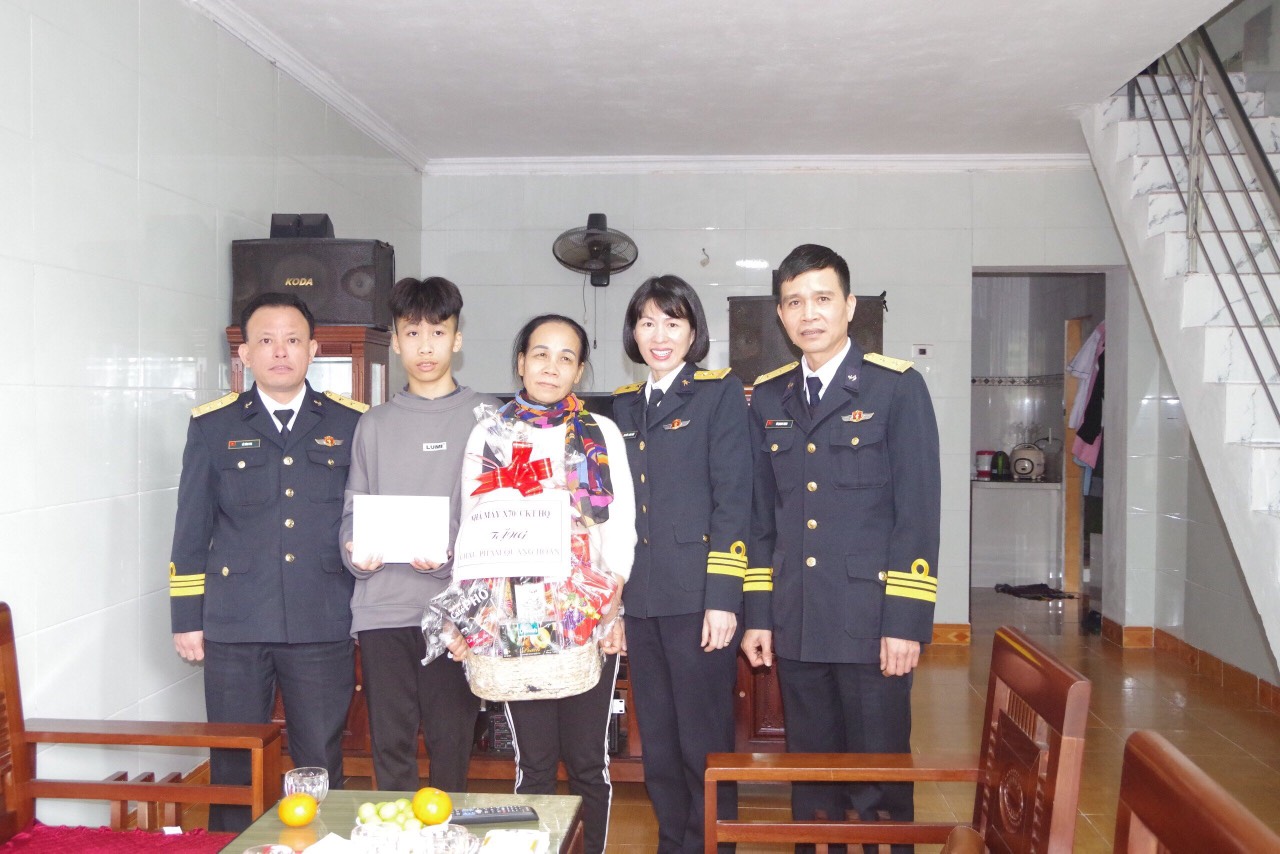 Đến với gia đình cháu Phạm Quang Hoàn, con ngư dân được Nhà máy nhận đỡ đầu, Trung tá Lê Đình Phi, Bí thư Đảng ủy, Chính ủy Nhà máy đã chia sẻ những khó khăn của gia đình trong thời gian qua đồng thời khẳng định Nhà máy luôn quan tâm đến các hoạt động chính sách, đền ơn đáp nghĩa, xây dựng tình đoàn kết gắn bó máu thịt quân dân, phát huy tốt phẩm chất cao đẹp “Bộ đội Cụ Hồ - Người chiến sĩ Hải quân” trong tình hình mới. Nhà máy đã hỗ trợ và trao quà Tết cho cháu Hoàn với tổng số tiền hơn 3 triệu đồng.