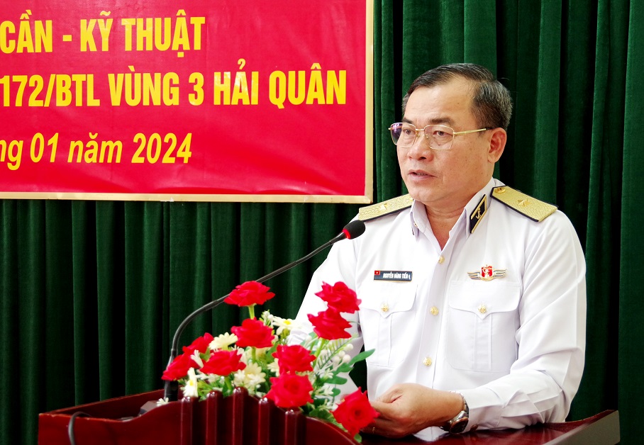 Chuẩn Đô đốc Nguyễn Đăng Tiến, Bí thư Đảng ủy, Chính ủy Vùng 3 phát biểu chỉ đạo tại buổi lễ công bố quyết định sáp nhập Phòng Hậu cần, Phòng Kỹ thuật Lữ đoàn 172