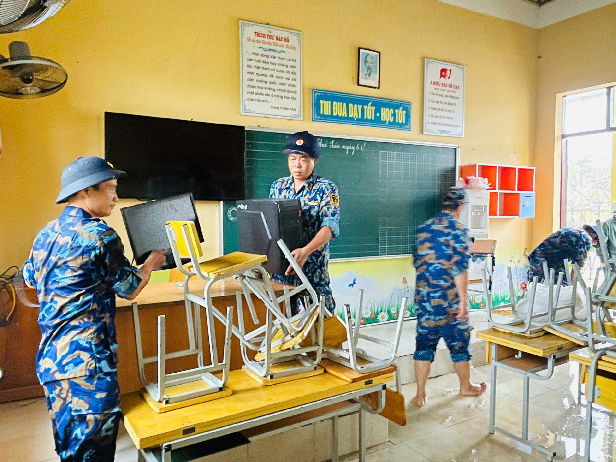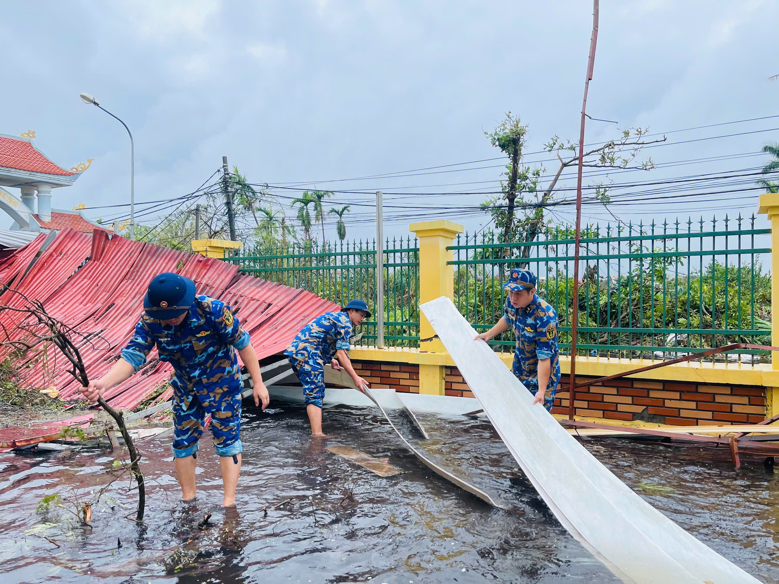 *Sáng 11/9, Trung tâm Quan trắc - Phân tích môi trường biển, Bộ Tham mưu Hải quân đã điều động cán bộ, nhân viên cùng trang bị, phương tiện của đơn vị đến giúp đỡ Trường Tiểu học Anh Dũng (quận Dương Kinh, TP. Hải Phòng) khắc phục hậu quả cơn bão số 3.