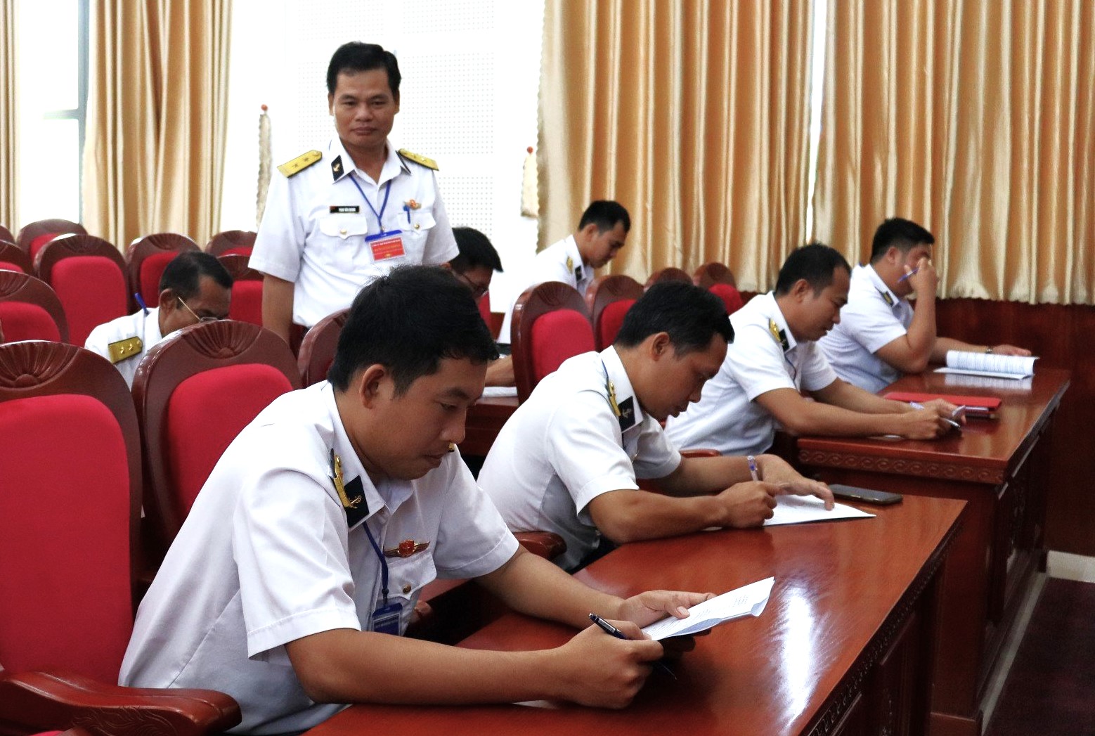 Các thí sinh thi nhận thức, kỹ năng, nghiệp vụ báo cáo viên