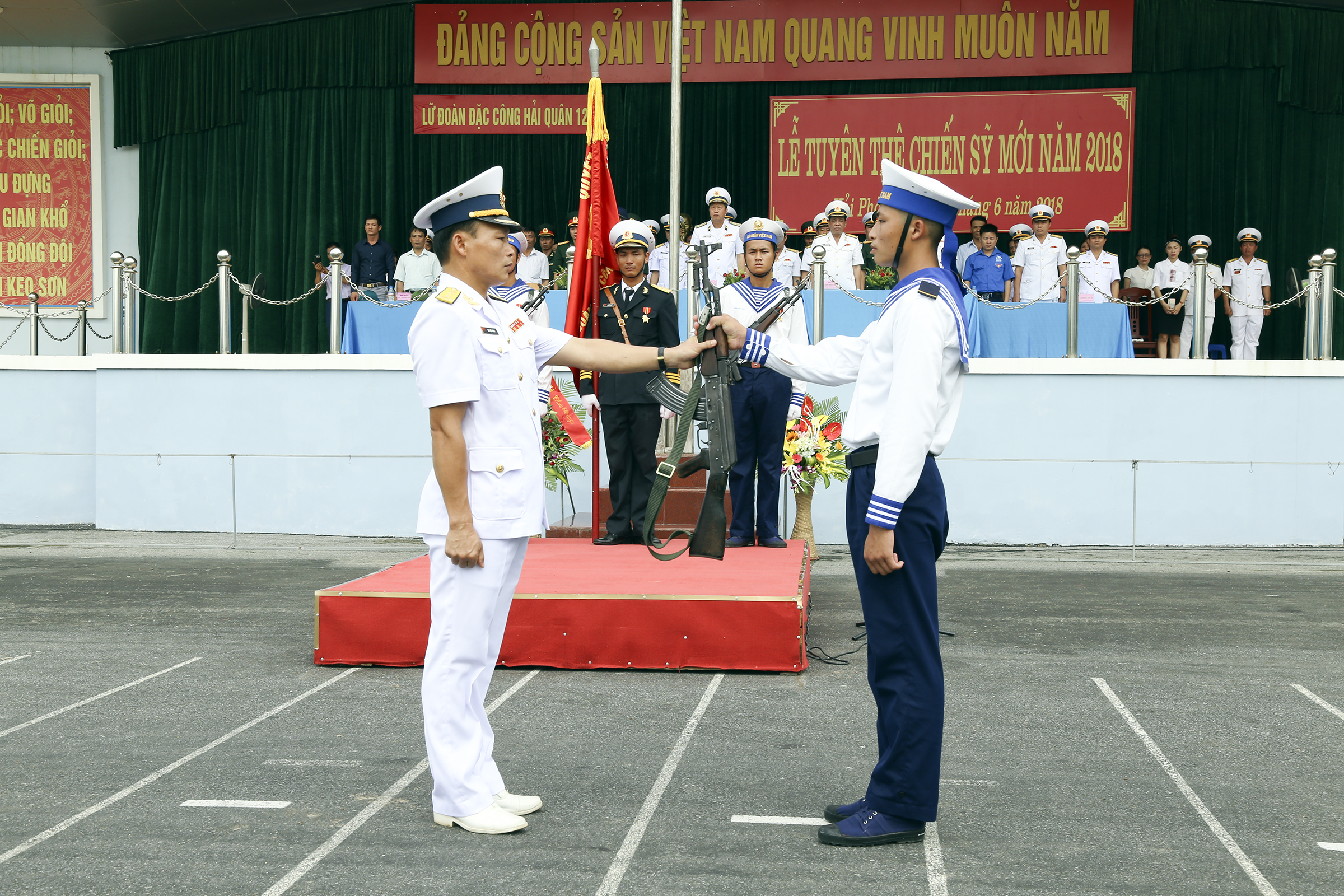 *Tham dự Lễ tuyên thệ chiến sĩ mới tại Lữ đoàn Đặc công Hải quân 126 có Chuẩn Đô đốc Đặng Minh Hải, Phó Chính ủy Hải quân; đại biểu cơ quan chức năng Bộ Tư lệnh Quân chủng; chính quyền địa phương.
