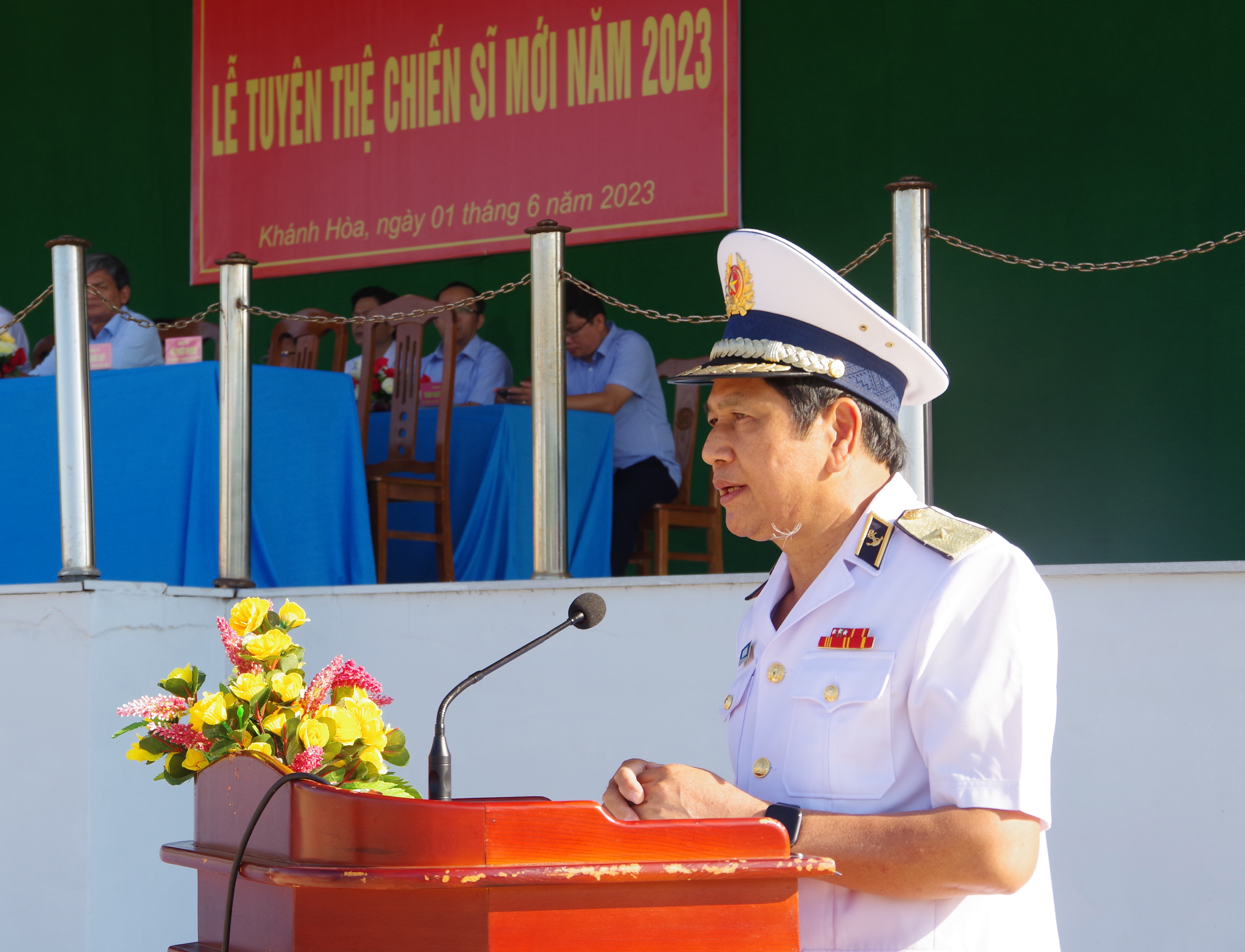 *Dự lễ tuyên thệ CSM tại Trung tâm huấn luyện Vùng 4 Hải quân có Chuẩn Đô đốc Ngô Văn Thuân, Bí thư Đảng uỷ, Chính ủy Vùng.