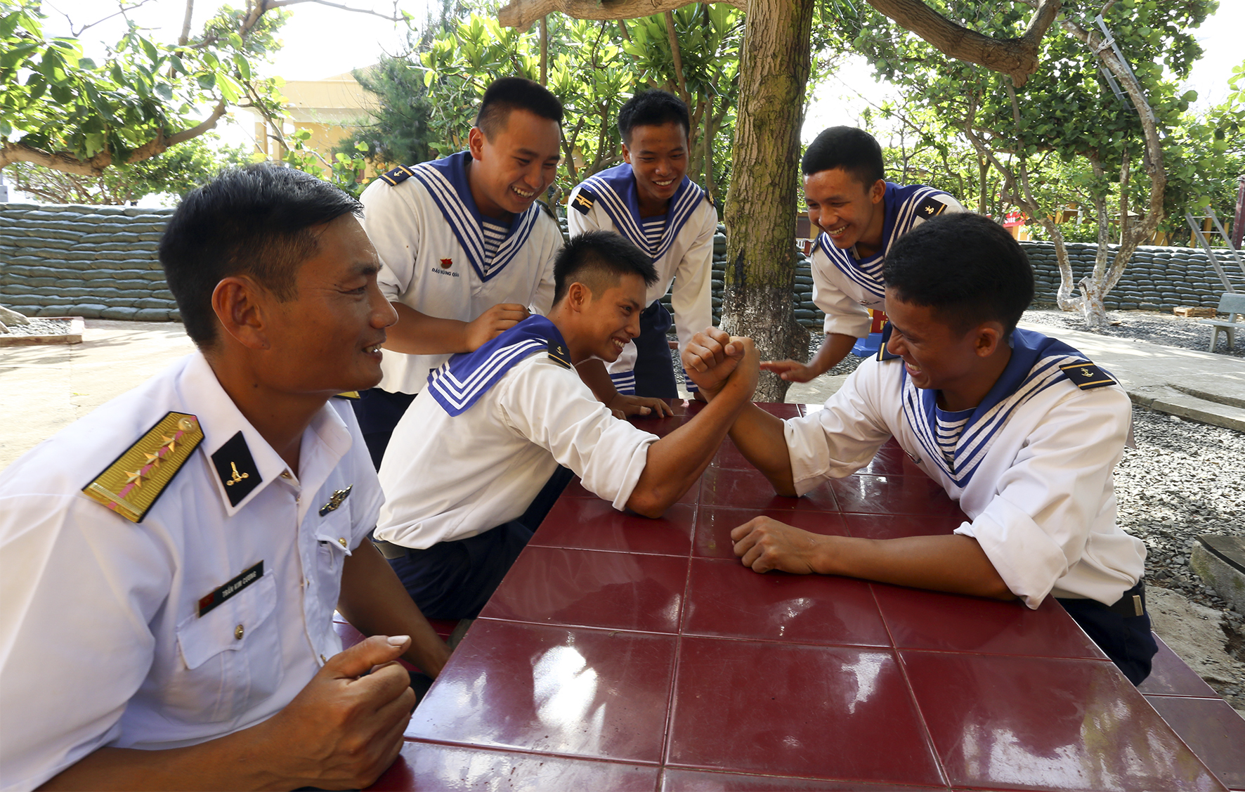 Phút giải lao của cán bộ, chiến sĩ đảo Trường Sa Đông. Ảnh: Văn Vũ