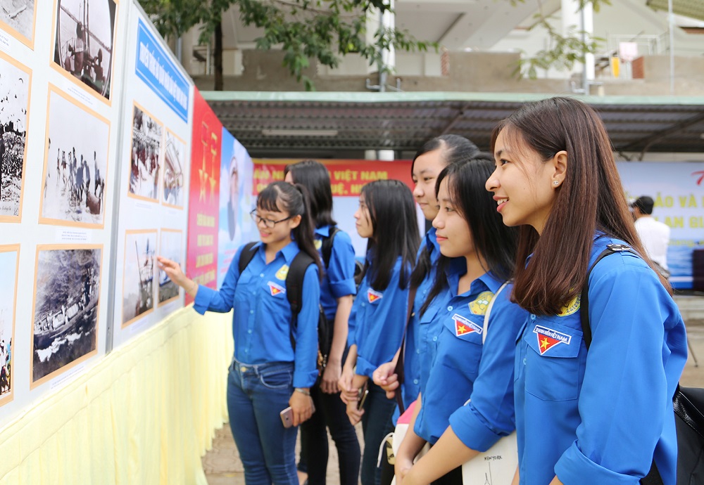 Sinh viên tham quan khu trưng bày hình ảnh 8 chiến công tiêu biểu của Hải quân nhân dân Việt Nam