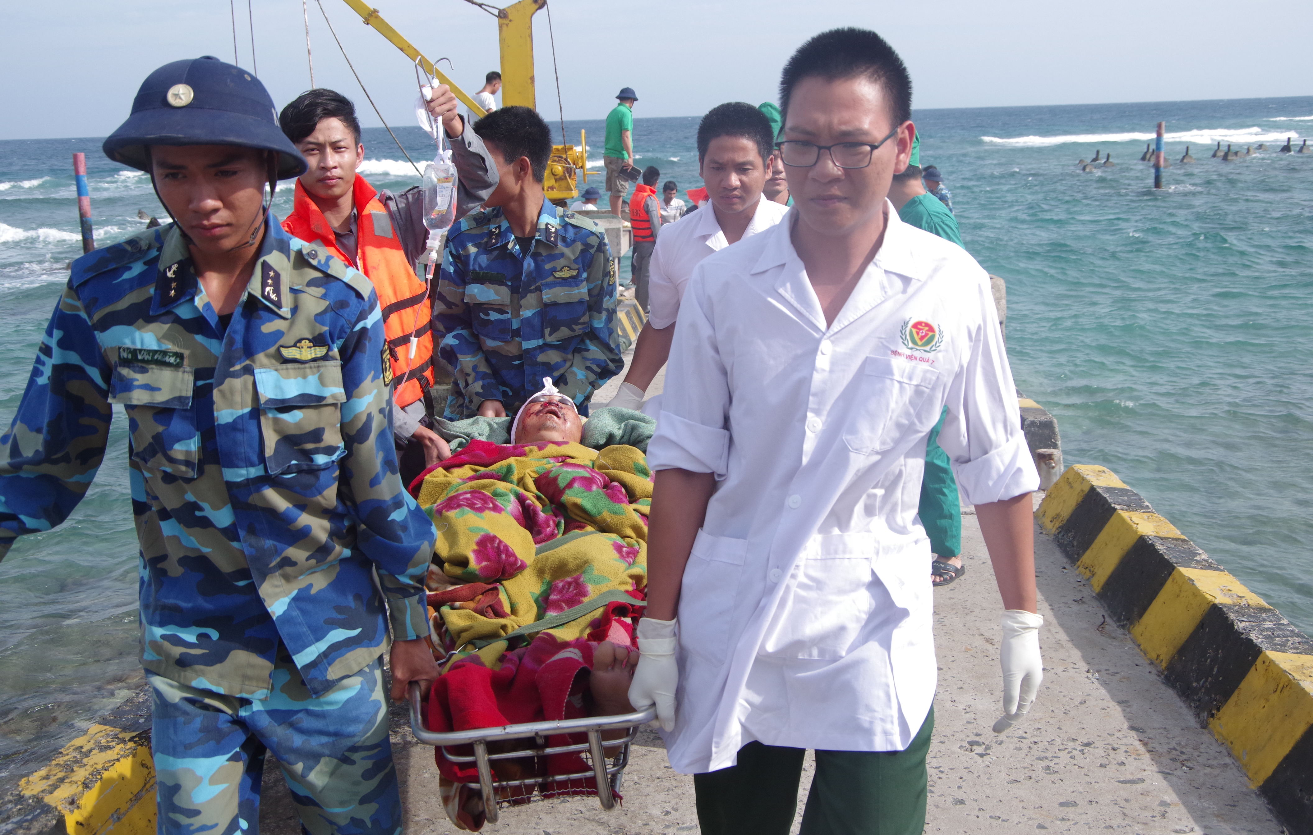 Quân y Bệnh xá đảo Phan Vinh tiếp nhận các bệnh nhân từ cầu tàu. Ảnh: CTV