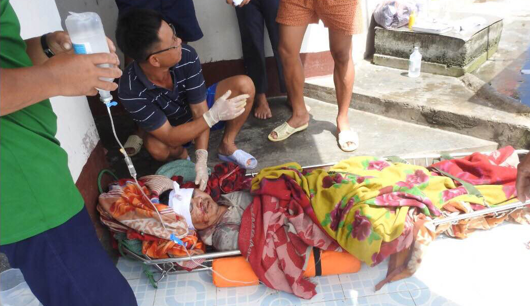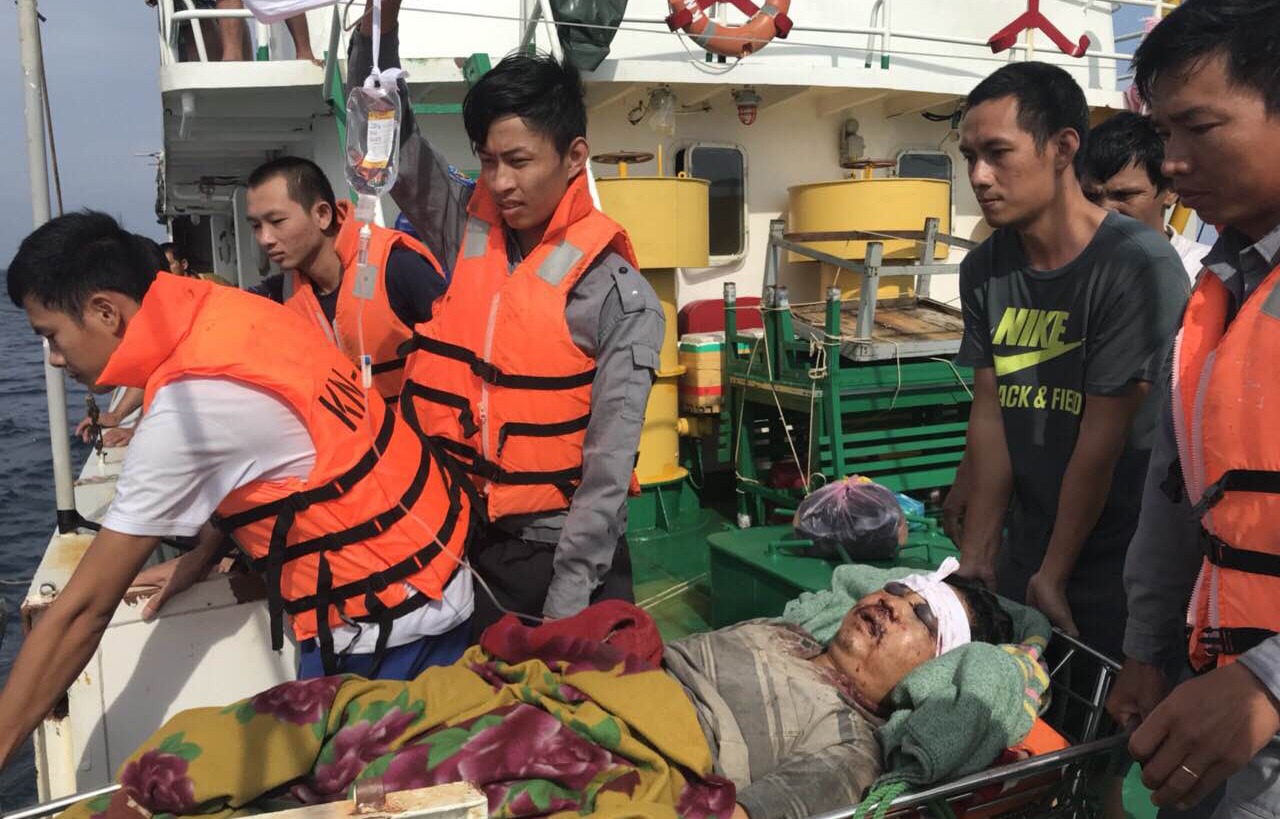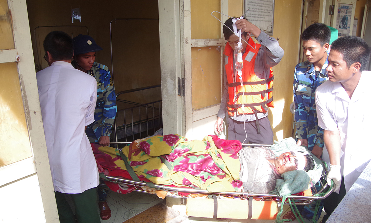 Ngư dân Nguyễn Ngọc Ngãi bị chấn thương đầu, đứt tai trái. Ngư dân Bùi Văn Đô, bị thương ở đầu với vết rách 5 cm. Ngư dân Bùi Thành Cảnh bị thương nhẹ. Quân y đảo Tốc Tan đã tiến hành sơ cứu, khâu, băng bó vết thương và theo dõi, điều trị.