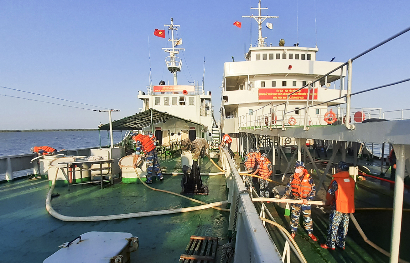 Tính đến nay, Quân chủng Hải quân đang có 3 tàu (Tàu 935, Tàu 936 và Tàu 937)chở và cấp 14 chuyến với gần 5 triệu lít nước ngọt cùng nhiều dụng cụ dự trữ nước, hàng nghìn bình nước lọc tinh khiết hỗ trợ nhân dân vùng hạn hán, xâm nhập mặn ở các tỉnh đồng bằng Sông Cửu Long.