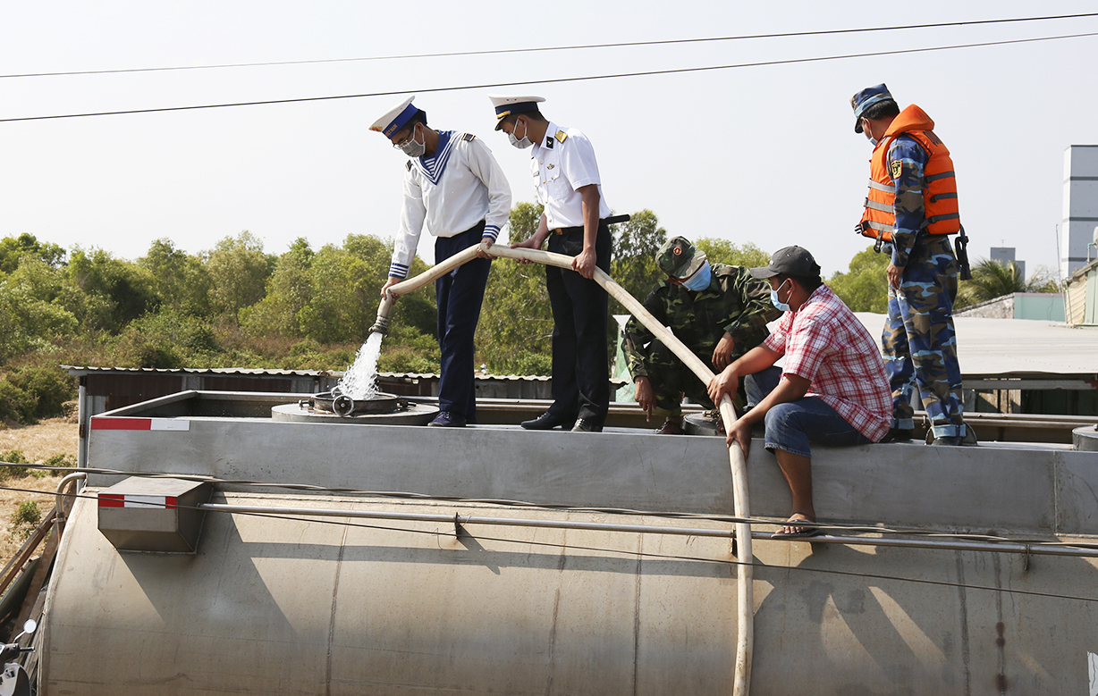 Ngày 23-3, Tàu 935 thuộc Hải đội 811, Lữ đoàn 125, Vùng 2 Hải quân cập bến xã Vàm Láng, huyện Gò Công Đông, tỉnh Tiền Giang để cấp hơn 200m3 nước ngọt hỗ trợ nhân dân vùng hạn, mặn.