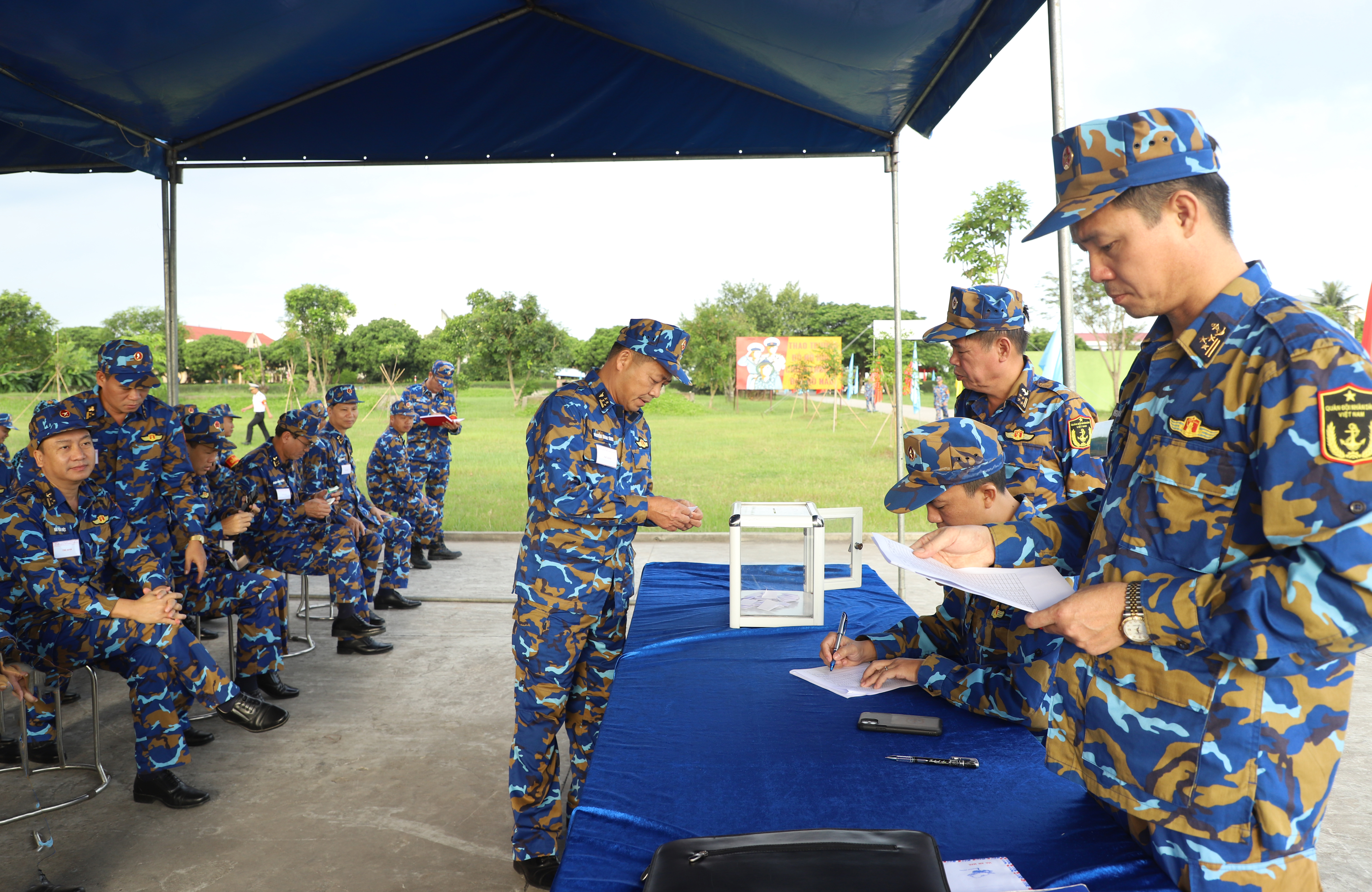 Đây là nội dung quan trọng trong phần thi công tác tham mưu. Các thí sinh thực hiện bắn bài 1 cho độ tuổi dưới 45 và bài 1b cho độ tuổi trên 45.