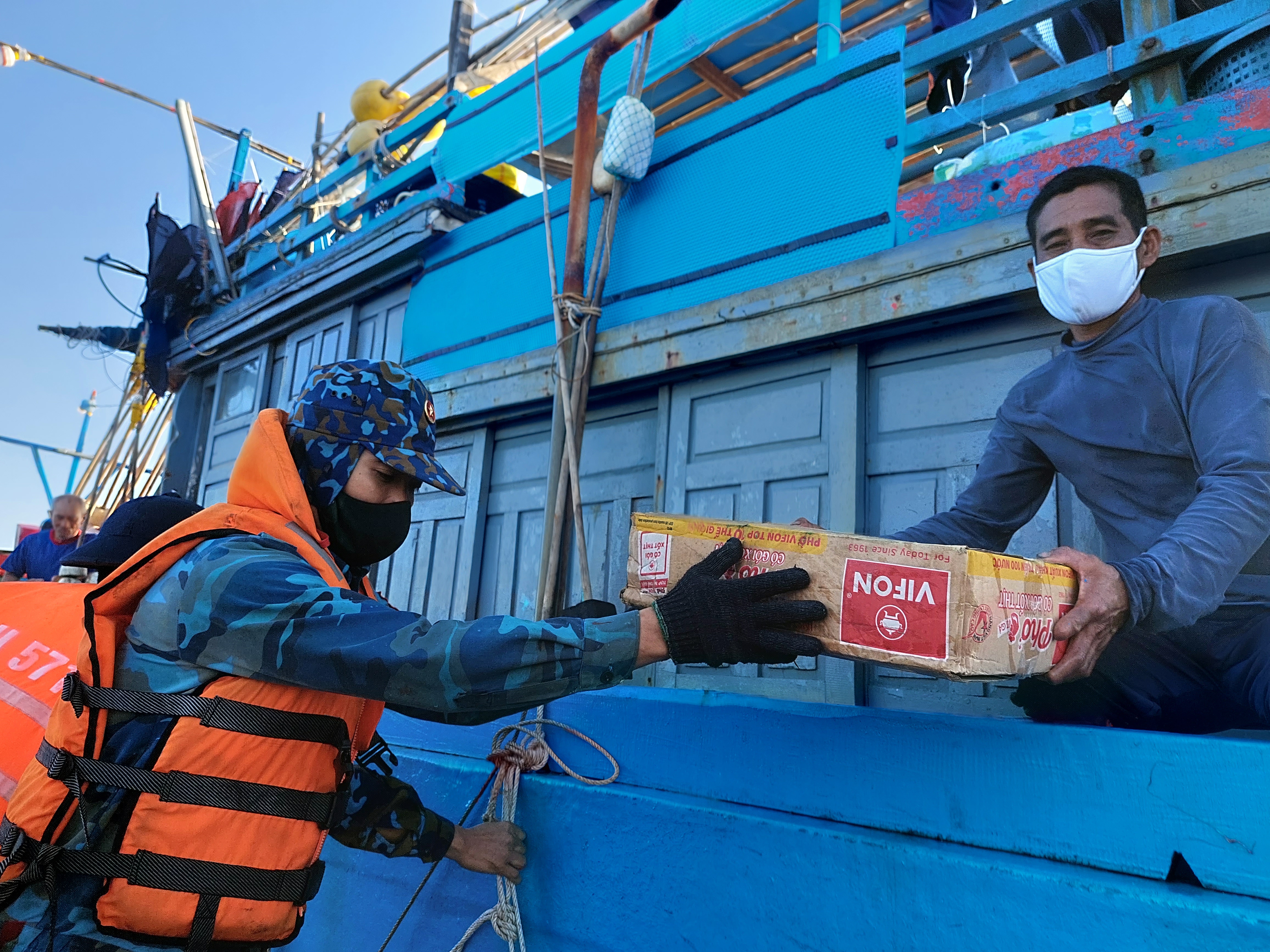 Lương thực, thực phẩm được chuyển đến các ngư dân