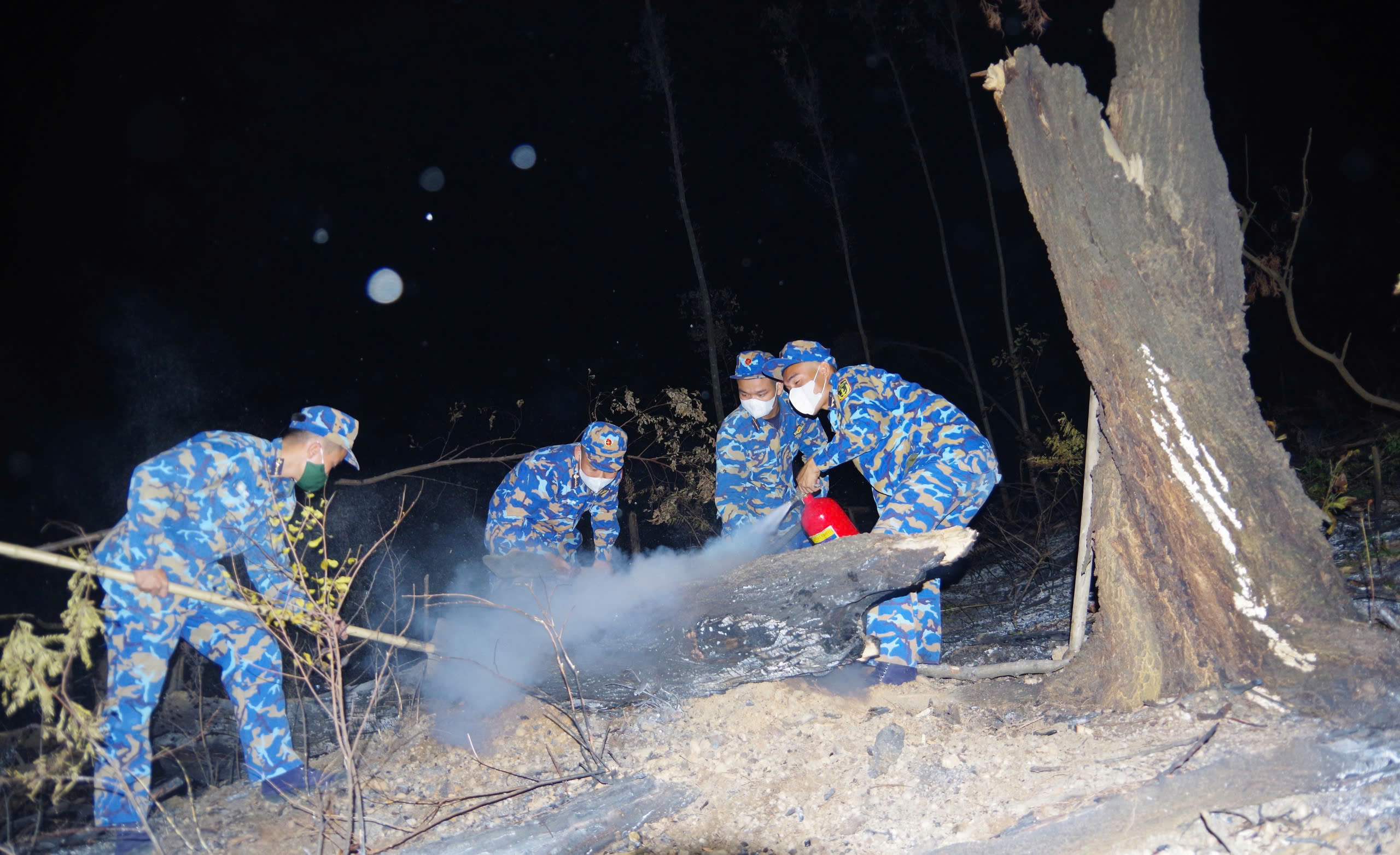 Cán bộ, chiến sĩ Lữ đoàn 170 tham gia chữa cháy rừng trong đêm