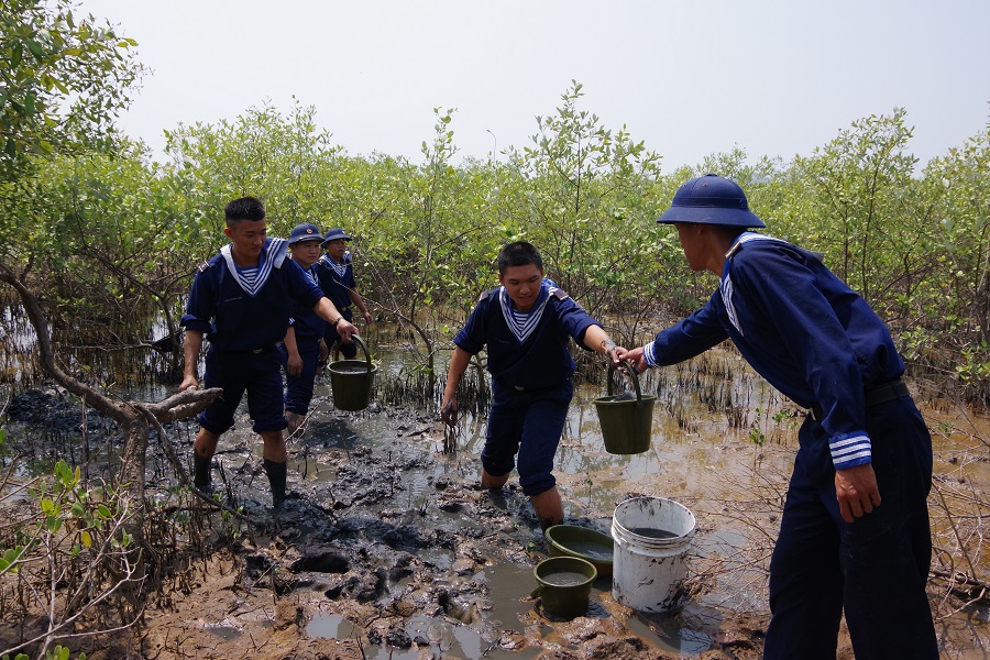 Cán bộ, chiến sĩ Vùng 2 Hải quân tham gia chữa cháy rừng