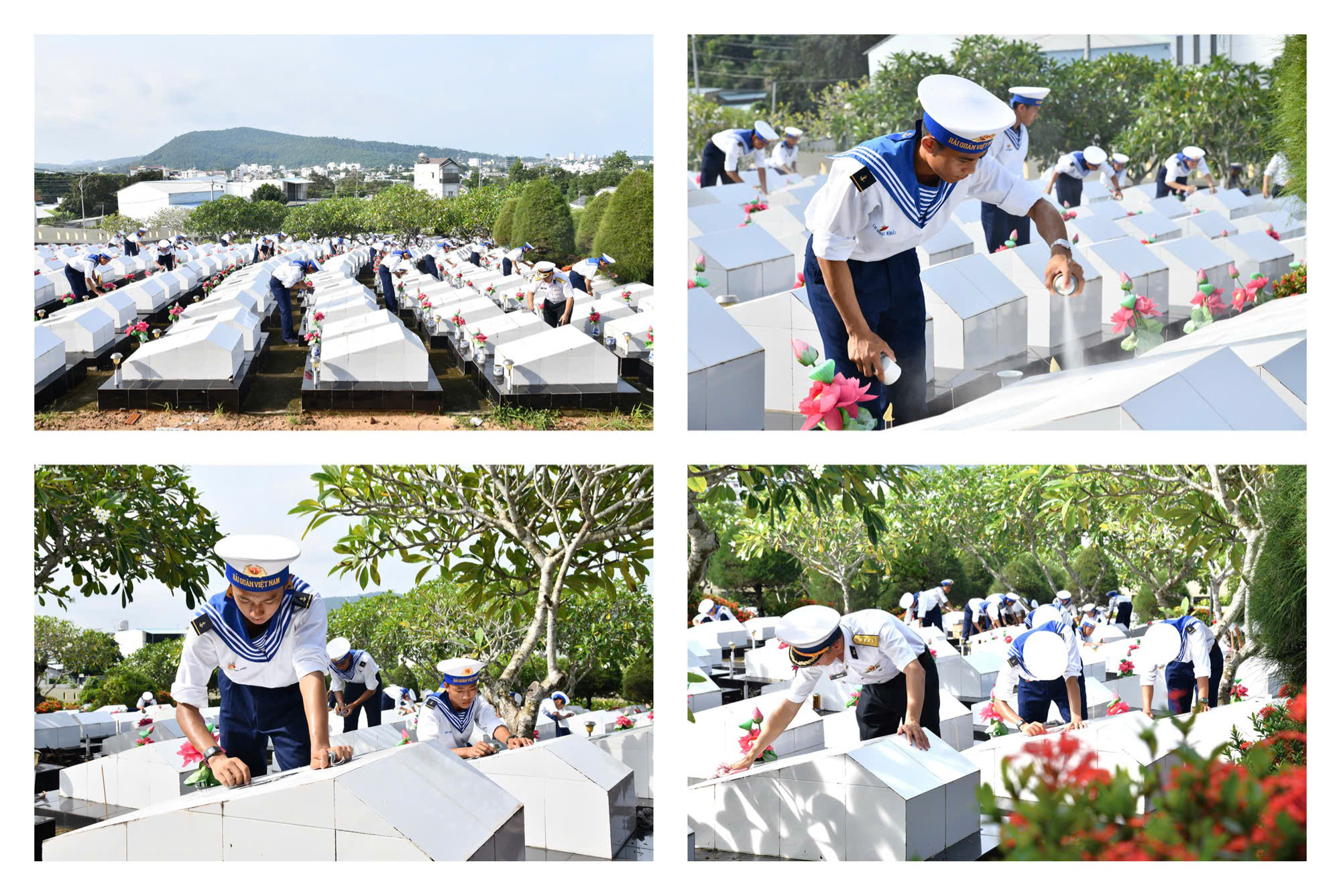Với tinh thần trách nhiệm và lòng tri ân sâu sắc, cán bộ, chiến sĩ các đơn vị đã tổng dọn vệ sinh toàn bộ khuôn viên nghĩa trang. Hơn 3.200 phần mộ được lau chùi, làm sạch; các tấm bia ghi thông tin liệt sĩ cũng được sơn mới đồng bộ.