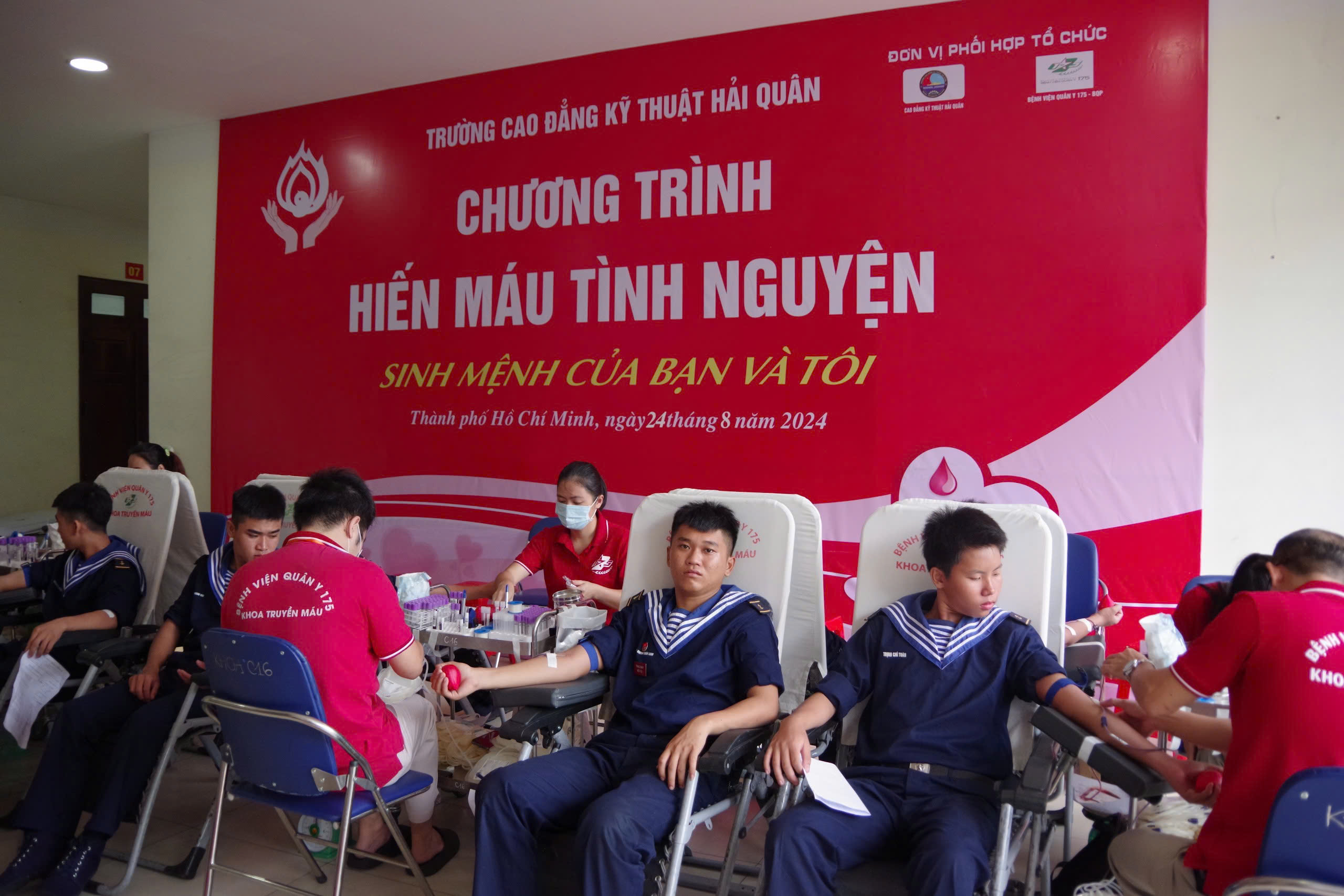 Ngày 24/8, tại TP. Hồ Chí Minh, Trường Cao đẳng Kỹ thuật Hải quân phối hợp với Bệnh viện Quân y 175 (Bộ Quốc phòng) tổ chức chương trình “Hiến máu tình nguyện” đợt 2 năm 2024.