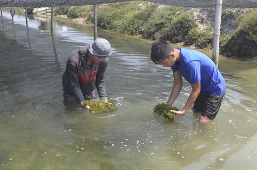 Người dân phường Ninh Hải, thị xã Ninh Hòa, tỉnh Khánh Hòa kiểm tra quá trình phát triển của rong nho