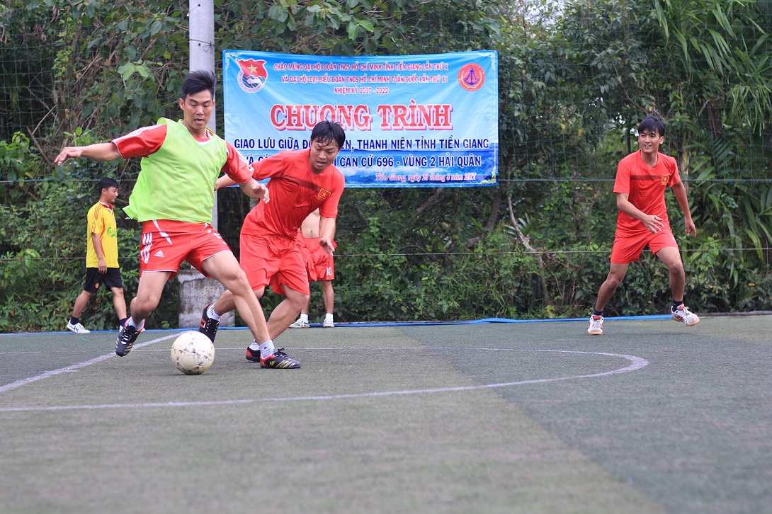 Đoàn viên thanh niên Căn cứ 696 và Tỉnh đoàn Tiền Giang giao hữu bóng đá