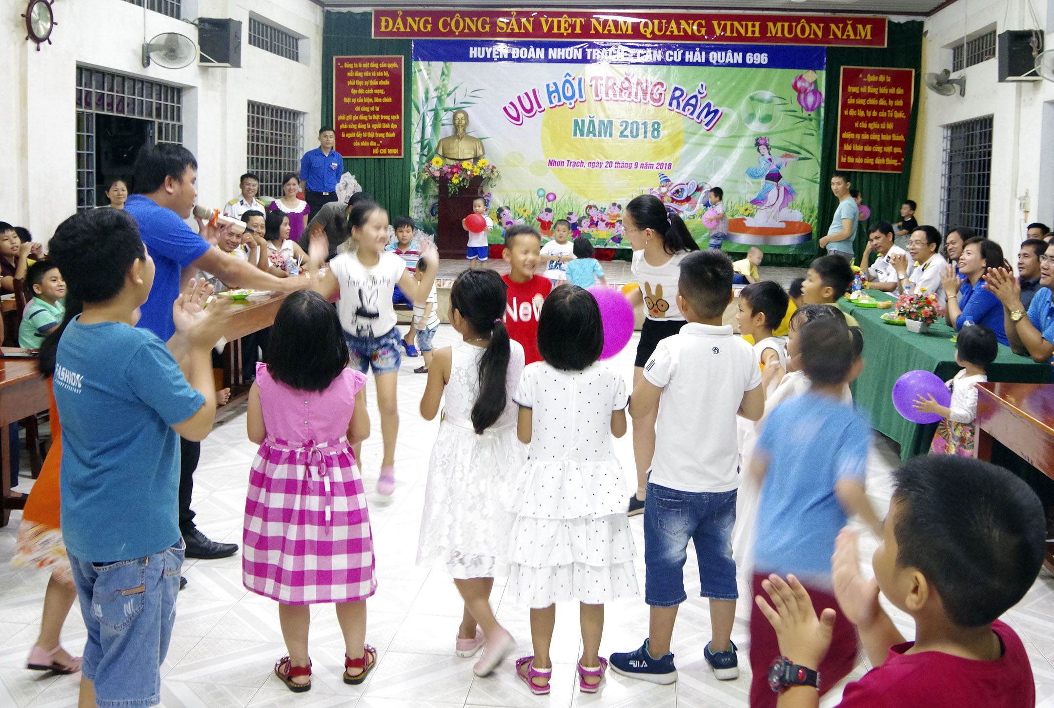 Tối 20-9, tại huyện Nhơn Trạch, tỉnh Đồng Nai, Hội Phụ nữ, Đoàn Thanh niên Căn cứ 696 phối hợp với Huyện đoàn Nhơn Trạch, Đoàn Khối các cơ quan tỉnh Đồng Nai tổ chức “Đêm Hội trăng rằm” cho các cháu là con cán bộ, nhân viên thuộc Căn cứ 696, Vùng 2 Hải quân.